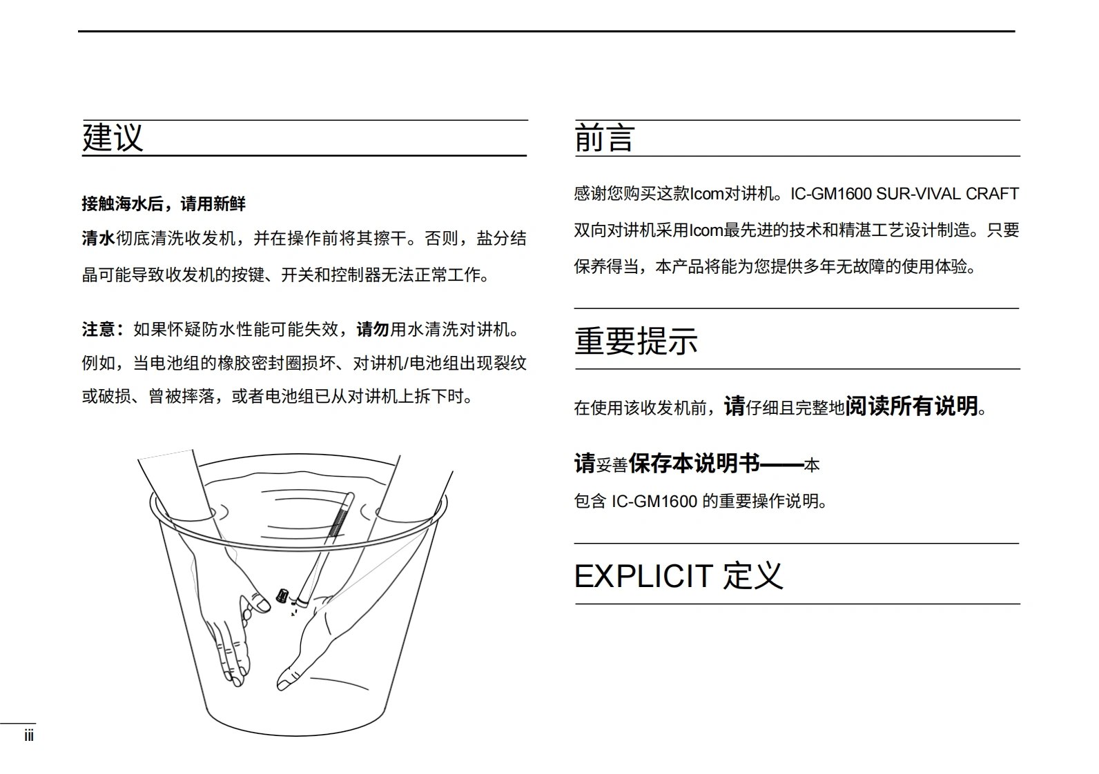 艾可慕icomicmg1600_操作说明书手册20260331中文版找手册网3天前发布关注私信2.69MB59页047艾可慕icomicmg1600_操作说明书手册20260331中文版此内容为付费资源,请付费后查看¥19¥21黄金会员免费钻石会员免费登录购买付费资源 第1页 / 共59页 第2页 / 共59页 第3页 / 共59页 第4页 / 共59页 第5页 / 共59页 第6页 / 共59页 第7页 / 共59页 第8页 / 共59页 第9页 / 共59页 第10页 / 共59页 试读已结束,还剩49页,您可下载完整版后进行离线阅读 THE END艾可慕 文本预览 COM使用说明书救生艇双向对讲机iCOM本设备符合美国联邦通信委员会(FCC)规则侧第15部分的规定。使用CALL本设备须确保不会造成有害干扰。16Hi/LoGMDSS2es68' 查看更多 收起部分 喜欢就支持一下吧收藏