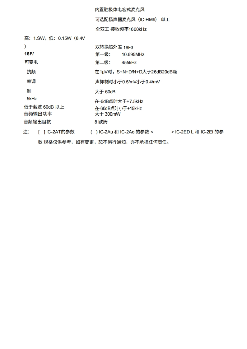 ICOM IC2F/AVHF2W年持FRONT PANELREAR PANELTWO TONE8SWITCHsWTCIC-2A,IC-2EIC-2ATSECTION V CONTROL FUNCTIONSTOP PANEL[IC-2Au,IC-2Ao,IC-2AT]3SQUELCH CONTROL-VOLUME CONTROLZTRANSMIT/BATTERY INDICATORDANTENNA CONNECTORBATTESEXTERNAL MIC JACK-00ZPOWER SWITCHREXTERNAL SPEAKER JACK-S1MHz THUMBWHEEL SWITCH-5KHz SHIFT SWITCH100KHz THUMBWHEEL SWITCH910KHz THUMBWHEEL SWITCH[IC-2EDL,IC-2EI]VOLUME CONTROL ANDINDEPENDENT TONECALL SWITCH IPUSTGENERATE TONE)50.0TPOWER SWITCH8