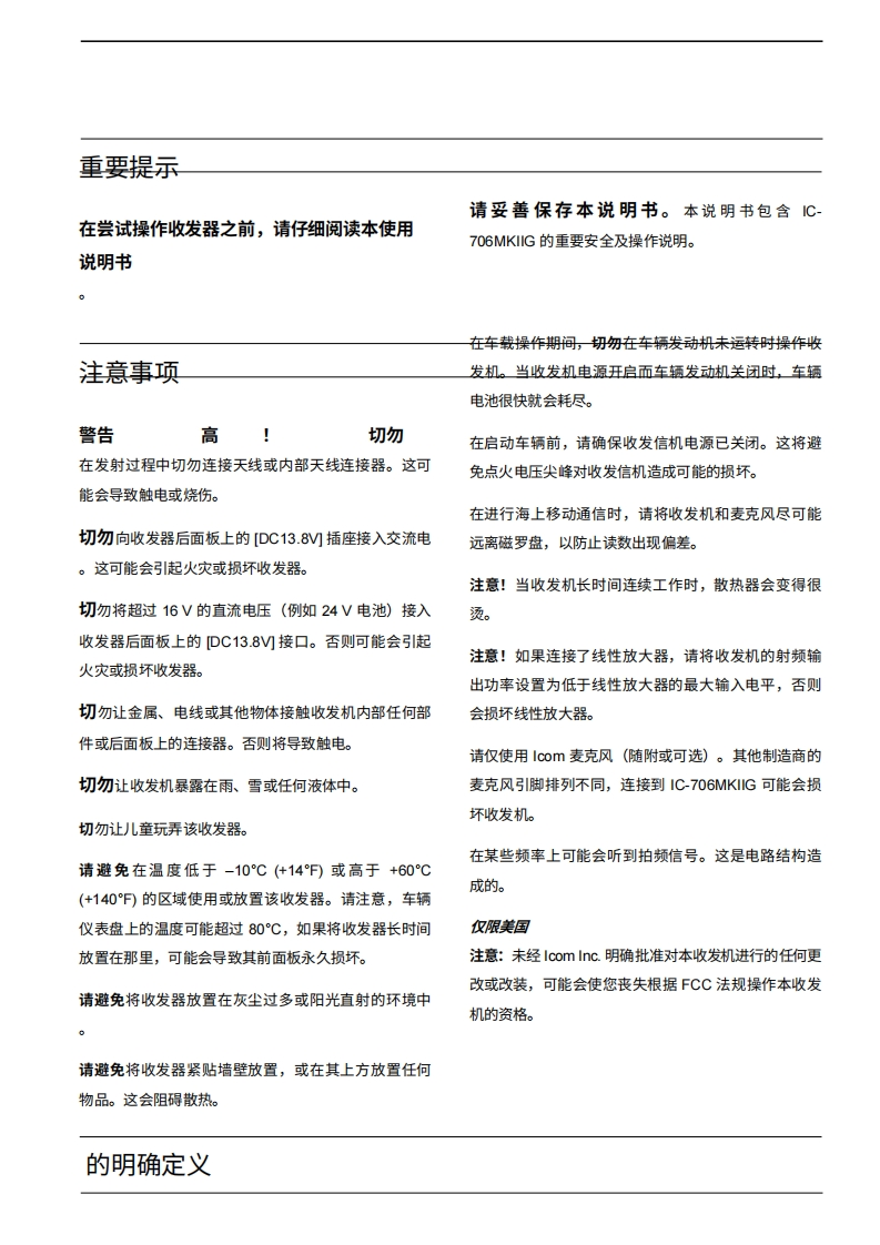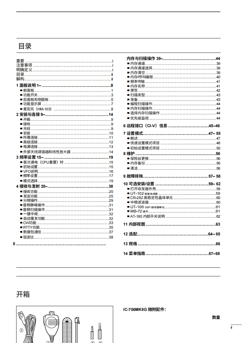 艾可慕Icom_IC-706MKiig-(Manual操作说明书手册)20260331中文版找手册网3天前发布关注私信6.91MB132页038艾可慕Icom_IC-706MKiig-(Manual操作说明书手册)20260331中文版此内容为付费资源,请付费后查看¥19¥21黄金会员免费钻石会员免费登录购买付费资源 第1页 / 共132页 第2页 / 共132页 第3页 / 共132页 第4页 / 共132页 第5页 / 共132页 第6页 / 共132页 第7页 / 共132页 第8页 / 共132页 第9页 / 共132页 第10页 / 共132页 试读已结束,还剩122页,您可下载完整版后进行离线阅读 THE END艾可慕 文本预览 fcom使用说明书HFNHF/UHF全模式收发机i706MKTMG本设备符合F℃C规则第15部分的规定。使用领遵守以下两个条件:(1)本设备不得造成有害干扰,且(②本设备必须接受所接收到的任何干扰,包括可能导数外运行的干扰。Icom Inc. 查看更多 收起部分 喜欢就支持一下吧收藏