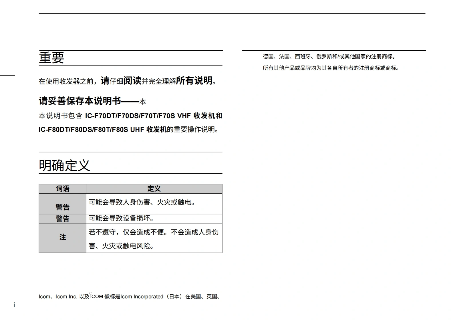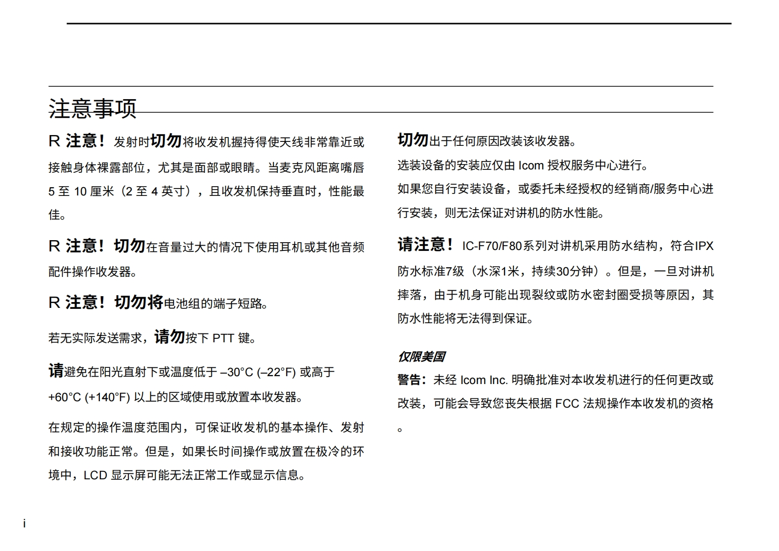 艾可慕Icom_IC-F70D_DS_T_TS_IC-F80D_DS_T_TS_使用说明书手册20260331中文版找手册网3天前发布关注私信3.47MB90页042艾可慕Icom_IC-F70D_DS_T_TS_IC-F80D_DS_T_TS_使用说明书手册20260331中文版此内容为付费资源,请付费后查看¥19¥21黄金会员免费钻石会员免费登录购买付费资源 第1页 / 共90页 第2页 / 共90页 第3页 / 共90页 第4页 / 共90页 第5页 / 共90页 第6页 / 共90页 第7页 / 共90页 第8页 / 共90页 第9页 / 共90页 第10页 / 共90页 试读已结束,还剩80页,您可下载完整版后进行离线阅读 THE END艾可慕 文本预览 COMBS1200Compatible使用说明书VHF收发机78咒0sICOMUHF收发机iFBODT/DSiFBOT/S32ch-01ccoplhme本设备符合FCC规则第15部分的规定。使用本设备须确保不会造Po P1 P2 P3成有害干扰。9a0Icom Inc.图中所示为IC-F70DT/T或CF80DT/T。 查看更多 收起部分 喜欢就支持一下吧收藏