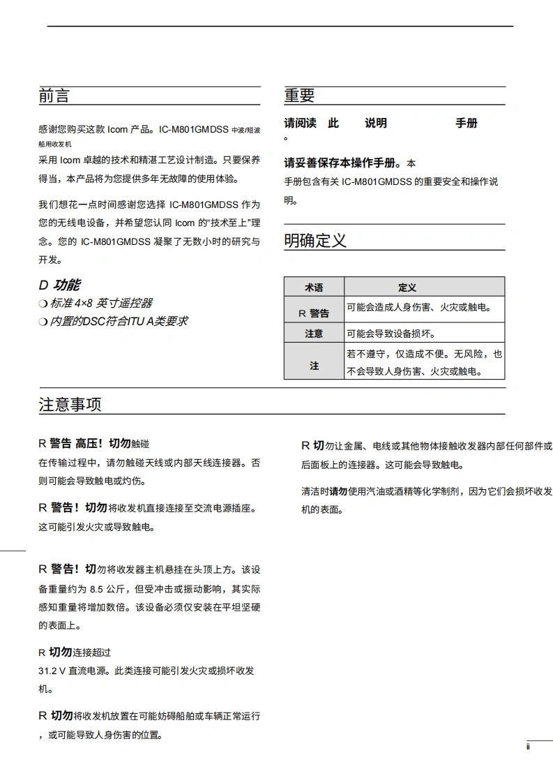 艾可慕Icom_IC-M801GMDSS_使用说明书手册_200720260331中文版找手册网3天前发布关注私信12.19MB123页025艾可慕Icom_IC-M801GMDSS_使用说明书手册_200720260331中文版此内容为付费资源,请付费后查看¥19¥21黄金会员免费钻石会员免费登录购买付费资源 第1页 / 共123页 第2页 / 共123页 第3页 / 共123页 第4页 / 共123页 第5页 / 共123页 第6页 / 共123页 第7页 / 共123页 第8页 / 共123页 第9页 / 共123页 第10页 / 共123页 试读已结束,还剩113页,您可下载完整版后进行离线阅读 THE END艾可慕 文本预览 iCOM使用说明书中波短波船用收发机iM801GMDSSIcom Inc.2007年6月 查看更多 收起部分 喜欢就支持一下吧收藏