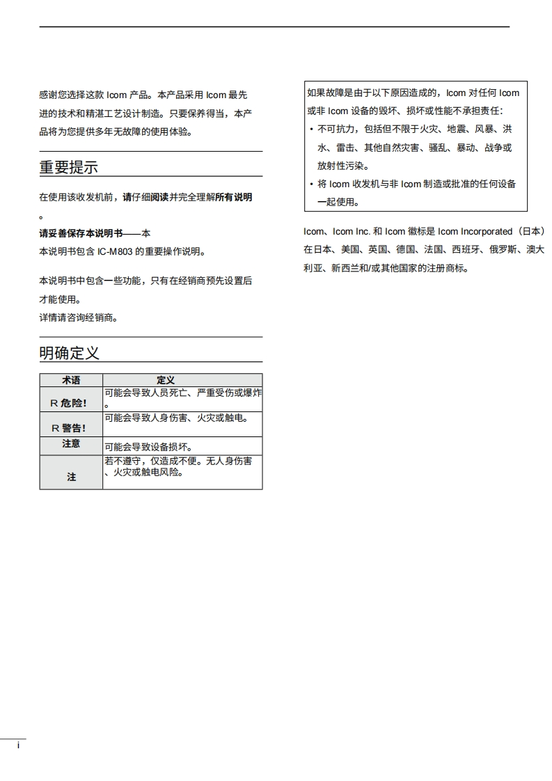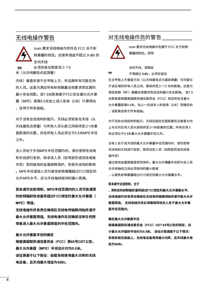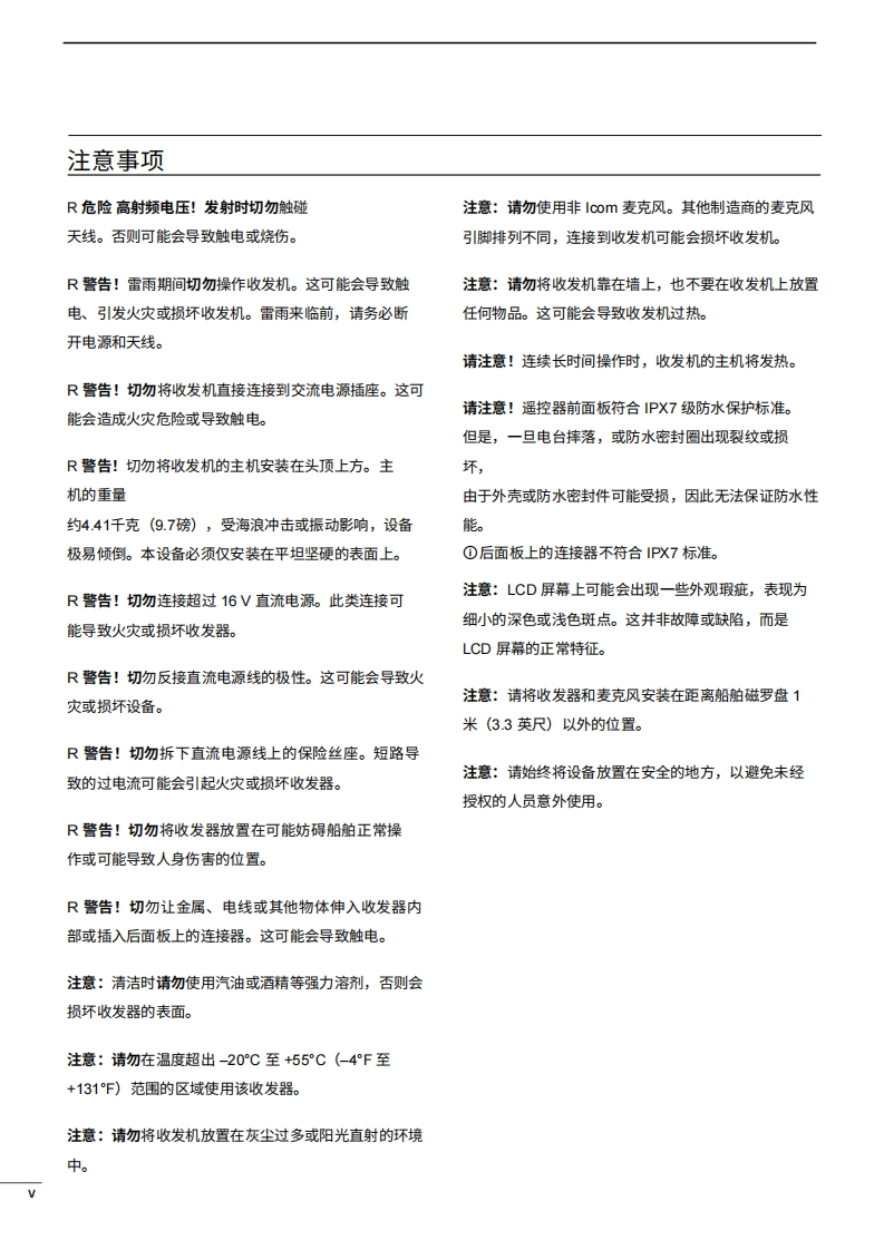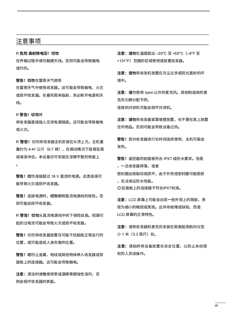 艾可慕Icom_IC-M803_MF-HF_Marine_SSB_Transceiver_-_Instruction_操作说明书手册20260331中文版找手册网3天前发布关注私信19.20MB145页041艾可慕Icom_IC-M803_MF-HF_Marine_SSB_Transceiver_-_Instruction_操作说明书手册20260331中文版此内容为付费资源,请付费后查看¥19¥21黄金会员免费钻石会员免费登录购买付费资源 第1页 / 共145页 第2页 / 共145页 第3页 / 共145页 第4页 / 共145页 第5页 / 共145页 第6页 / 共145页 第7页 / 共145页 第8页 / 共145页 第9页 / 共145页 第10页 / 共145页 试读已结束,还剩135页,您可下载完整版后进行离线阅读 THE END艾可慕 文本预览 iCOM使用说明书MFHF船用收发机IM8030□0本设备符合美国联邦通信委员会(FCC)规则第15部分的规定。使用本设备须遵守以下两项条件:()本设备不得适成有害干扰;②本设备必须接受任何接收到的干扰,包括可能导致意外操作的干扰。Icom Inc. 查看更多 收起部分 喜欢就支持一下吧收藏