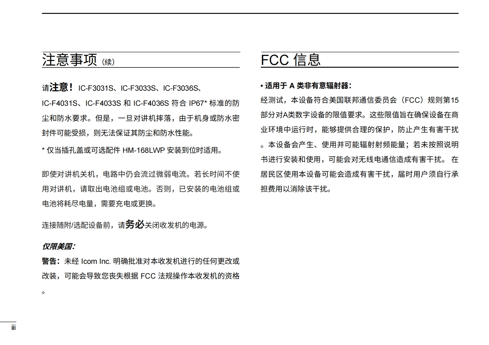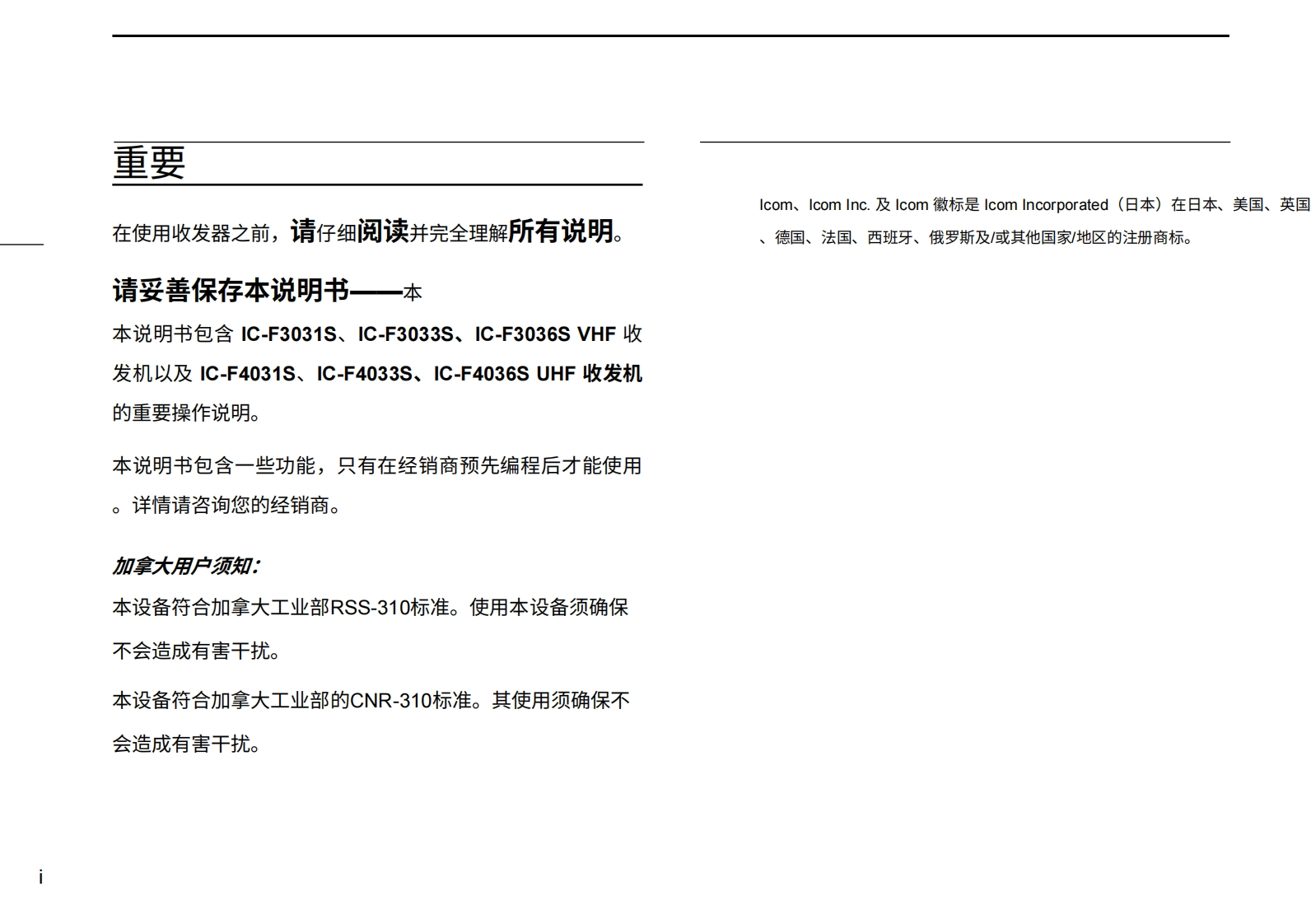艾可慕Icom_iF3031S-iF3036S-iF4033S-iF4031S-iF4036S用户使用操作说明书手册20260331中文版找手册网3天前发布关注私信2.90MB65页033艾可慕Icom_iF3031S-iF3036S-iF4033S-iF4031S-iF4036S用户使用操作说明书手册20260331中文版此内容为付费资源,请付费后查看¥19¥21黄金会员免费钻石会员免费登录购买付费资源 第1页 / 共65页 第2页 / 共65页 第3页 / 共65页 第4页 / 共65页 第5页 / 共65页 第6页 / 共65页 第7页 / 共65页 第8页 / 共65页 第9页 / 共65页 第10页 / 共65页 试读已结束,还剩55页,您可下载完整版后进行离线阅读 THE END艾可慕 文本预览 cOMMDC 1200Compatible使用说明书VHF收发机iF3031SiF3033SiF3036SUHF收发机iF403TSCOMiF4033SiF4036SIcom Inc.本设备符合FCC规则第15部分的规定。使用本设备须确保不会造成有害干扰。照片显示的是VHF收发机 查看更多 收起部分 喜欢就支持一下吧收藏