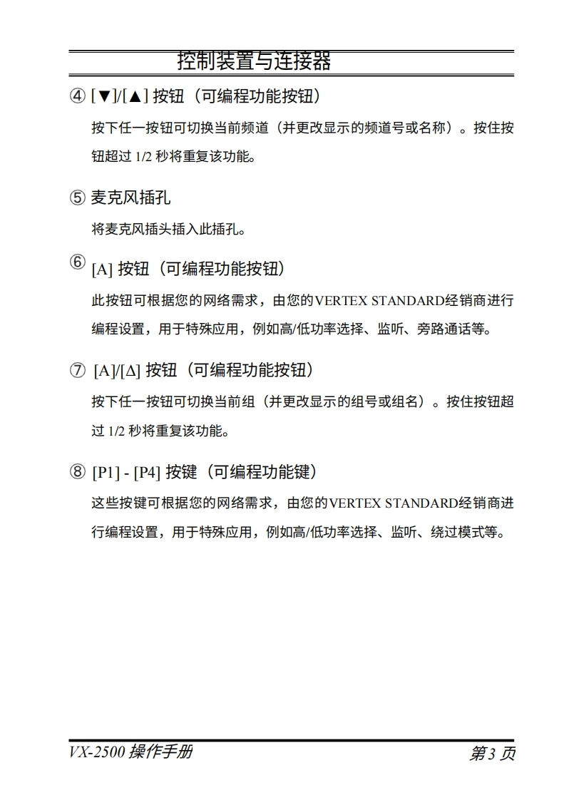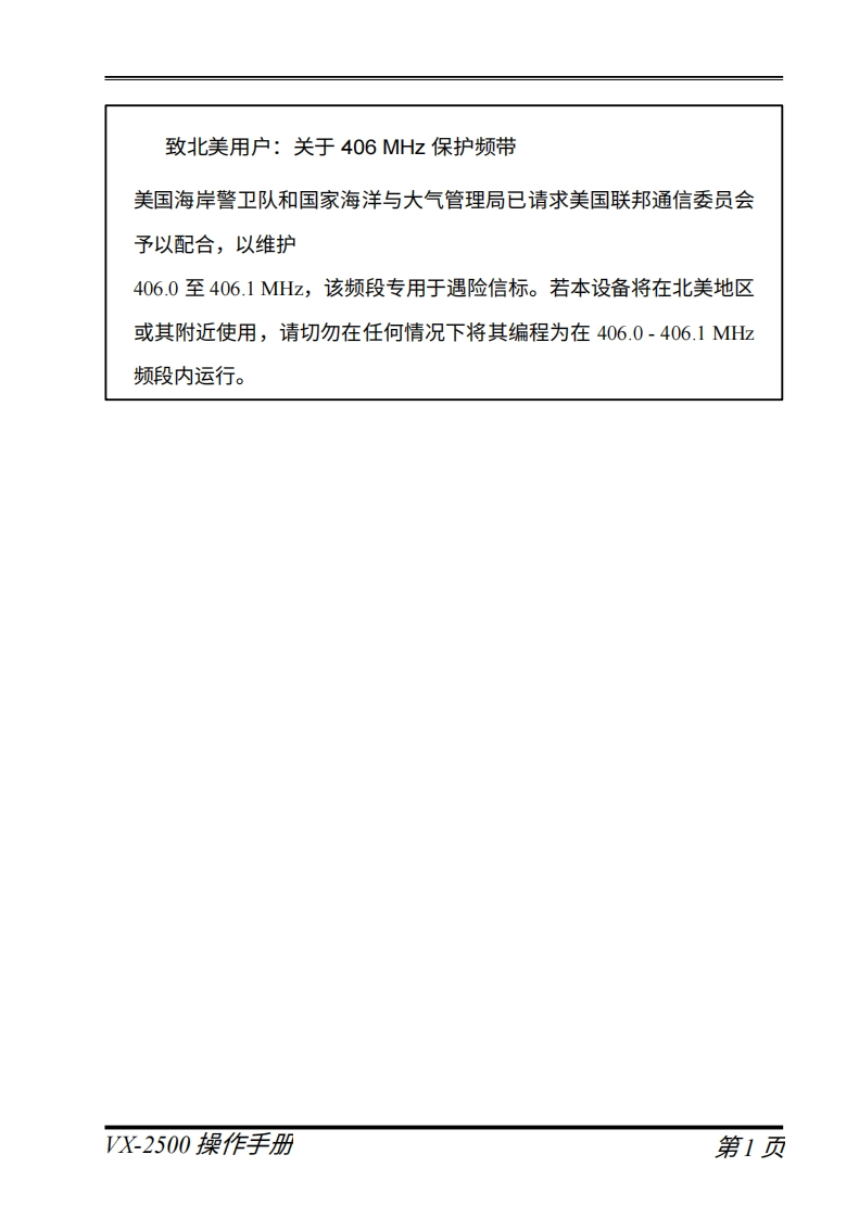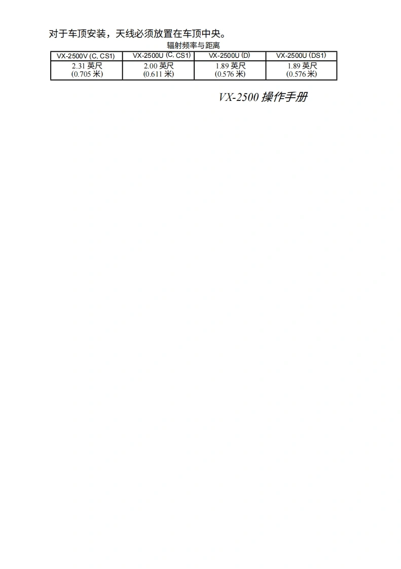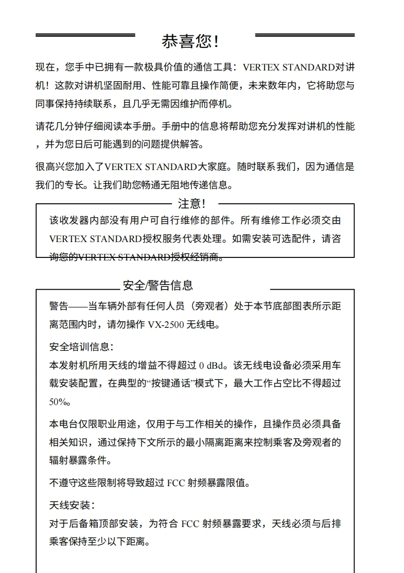 Vertex StandardVX-2500操作手册left件无与tmn带d…'ERTEX…OA可i△VERTEX STANDARD CO..LTD.日本东京都目黑区中目黑4-8-8,邮编153-8644VERTEX STANDARD美国总部美国加利福尼亚州赛普里斯市沃克街10900号,邮编90630YAESU EUROPE B.V.P.O.Box 75525,1118 ZN Schiphol,The NetherlandsYAESU UK LTD.英国汉普郡温彻斯特温纳尔克洛斯太阳谷商业园12单元,邮编S0230LBVERTEX STANDARD HK LTD香港九龙观塘海滨道139-141号海景中心20楼5室