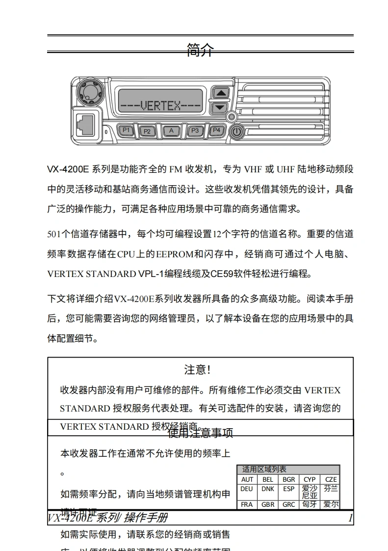 vertex-standard-VX-4200E_操作说明书手册_ENG_EC035N213-20260409中文版找手册网前天发布关注私信1MB40页037vertex-standard-VX-4200E_操作说明书手册_ENG_EC035N213-20260409中文版此内容为付费资源,请付费后查看¥19¥21黄金会员免费钻石会员免费登录购买付费资源 第1页 / 共40页 第2页 / 共40页 第3页 / 共40页 第4页 / 共40页 第5页 / 共40页 第6页 / 共40页 第7页 / 共40页 第8页 / 共40页 第9页 / 共40页 第10页 / 共40页 试读已结束,还剩30页,您可下载完整版后进行离线阅读 THE END威泰克斯 文本预览 Vertex StandardVX-4200E系列操作手册VERTEX---Vertex Standard LMR,Inc.日本东京都目黑区中目黑4-88,邮编153-8644 查看更多 收起部分 喜欢就支持一下吧收藏