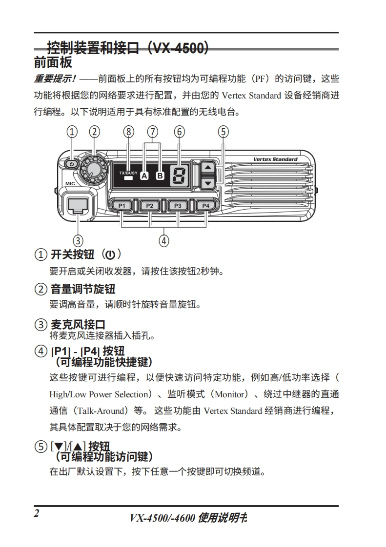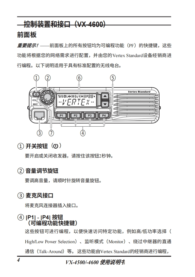 vertex-standard-VX-4500_4600_操作说明书手册_RU_EC093U631-20260409中文版找手册网前天发布关注私信1.63MB54页032vertex-standard-VX-4500_4600_操作说明书手册_RU_EC093U631-20260409中文版此内容为付费资源,请付费后查看¥19¥21黄金会员免费钻石会员免费登录购买付费资源 第1页 / 共54页 第2页 / 共54页 第3页 / 共54页 第4页 / 共54页 第5页 / 共54页 第6页 / 共54页 第7页 / 共54页 第8页 / 共54页 第9页 / 共54页 第10页 / 共54页 试读已结束,还剩44页,您可下载完整版后进行离线阅读 THE END威泰克斯 文本预览 Vertex StandardVX-4500VX-4600使用说明书俄语W&日1%m9/可H日P884…EPrE8-pp2 Pa p4P p2 pa pyX-4500yX-4600可编程功能模式(水:仅限VX-4600)六个可编程按键5音多码编码器/解(TA Scan)VOX码器ARTSTM系统背光调节车辆警报信号中继放大器功能键盘锁定关闭蜂鸣声加密扫描在多个*组内扫描“Dual Watch”双监听“跟随"扫描(Follow-Me)直连模式扫描 查看更多 收起部分 喜欢就支持一下吧收藏