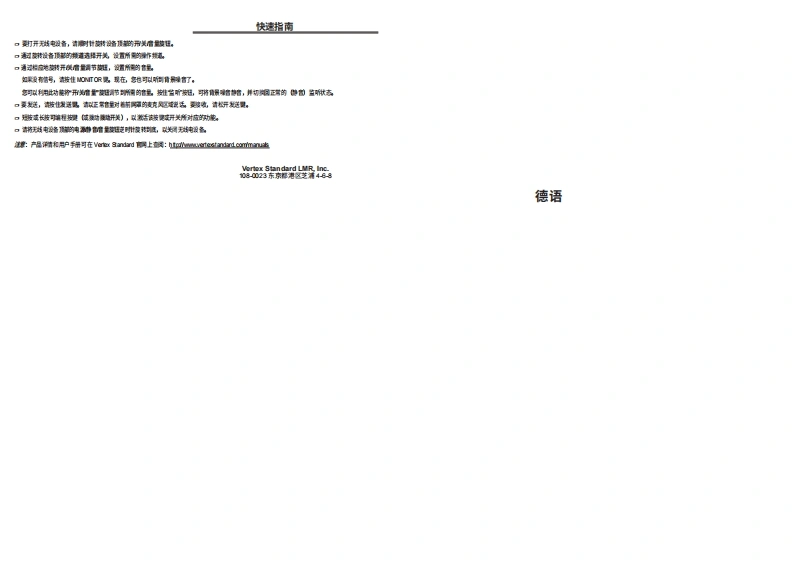 VX-920E用户指南VX-920E用户指南控制与开关基本操作60路控和开送基本操作价于两口新楼转板上均V0P版日打开陵机王在病口清架重板上的C醒用,醒州细芮作獭通的国宽率网:在媒,挤神素增量开清里得私膜集中同口转OU版日,装州司的风年电已站用到甘港,打开陵音机江装级有信号,请M0T0R复:精景瑞相国Cm铜等·中臂规格©网将声,忽可眼利用t情来节0LF服被陆乳OUPw延:静增世资日调节器以提看所司的音量,按准OMTO飘健可静音剂4如果烟有结号,请坡州很,您会研关,零可消除声梳复正常游)死情料音,样可将寓作方来调整器发结号,清维伊工开关。对看麦克是议话无孔阳使行滑美者量特调节糊电平按仕币关雪细联漏少正市量万制插和区域通风重背线恢复正辆任烈达开关下短山贵飘降肌试,起和可开关上女辅TT开关:下装也可夏填膜T03新4四口要疑信号,被准交智里。用正写增量对看贵克飘为麦虎风的于前颗网后仿)中联正常里安裂开关每相LCDD将煤斯上坊0F版被晓全线州清,眼线责克风超体可起:发下长均可州用满下无站电横地纤关)时就活分瑞装甘弥对麓,黄途有送产性清和使用银用请访问@3nd山d两世视秘田btwMawowstestaodaod.commmo口在,挤事能开关器注上:如了新赫产塑信及5LVata3ntr是/erex Stndad UR,he的搞标n州有其法高标内其备州有老制产。压鸭程网,请访钢色8ndrd属收:c015Veda3ndr列L山Re州有权利,htp wvotessandard.commanuVertex Standard LMR Ine.Vertex Standard LMR.Ine.日本市京表区芝46-8单编108002日本克京程电区芝浦468,编080023法语VX-920E用户指南VX-920E用户手册控和连接器基本择作口称州楼转家板上的联日,打开欢发视控制元件口被转媒转上的排材华装伍,方解霸的牌作伸道,上口灌解积厚霸司泽如要有售号,装性栏%大填音量材部,忽新精制信,眼用它滨定老开关通过自而制如是伸的花力州南唐量网新程算四中四r开关海国。发别,请长结所浅,对看T而区跟话贵月员克具于有指格料授,锈精量筑网正驾。通团根式,请松形T黄妈果新rD具工峰的a装下城长)可复候更请和状志可研美动联素活与有i甲可安现定开美石可可口销院板上的音台电装支州被裤解关网强装视螺:红黄了制产型的视多年茶信想和铁用闲,者古钢ta3drd的方阔:出mam业Vertox Standard LMR.Inc