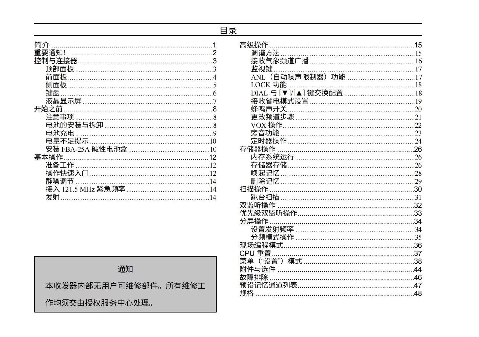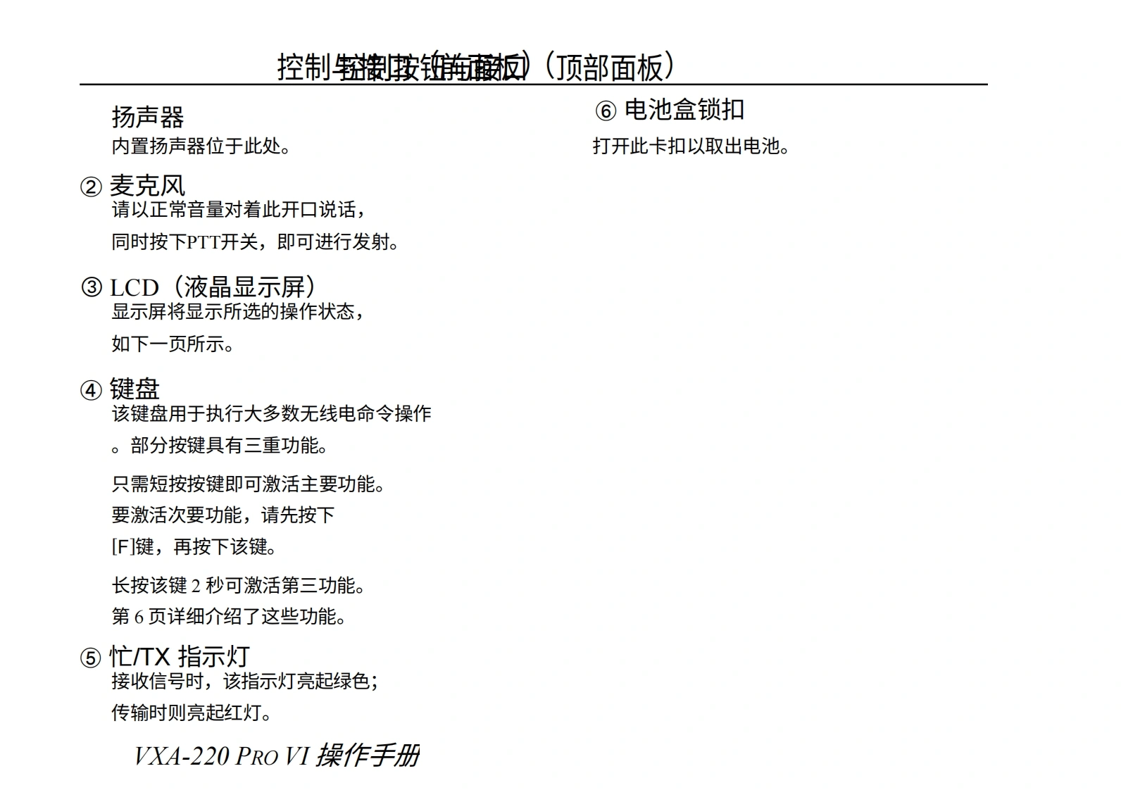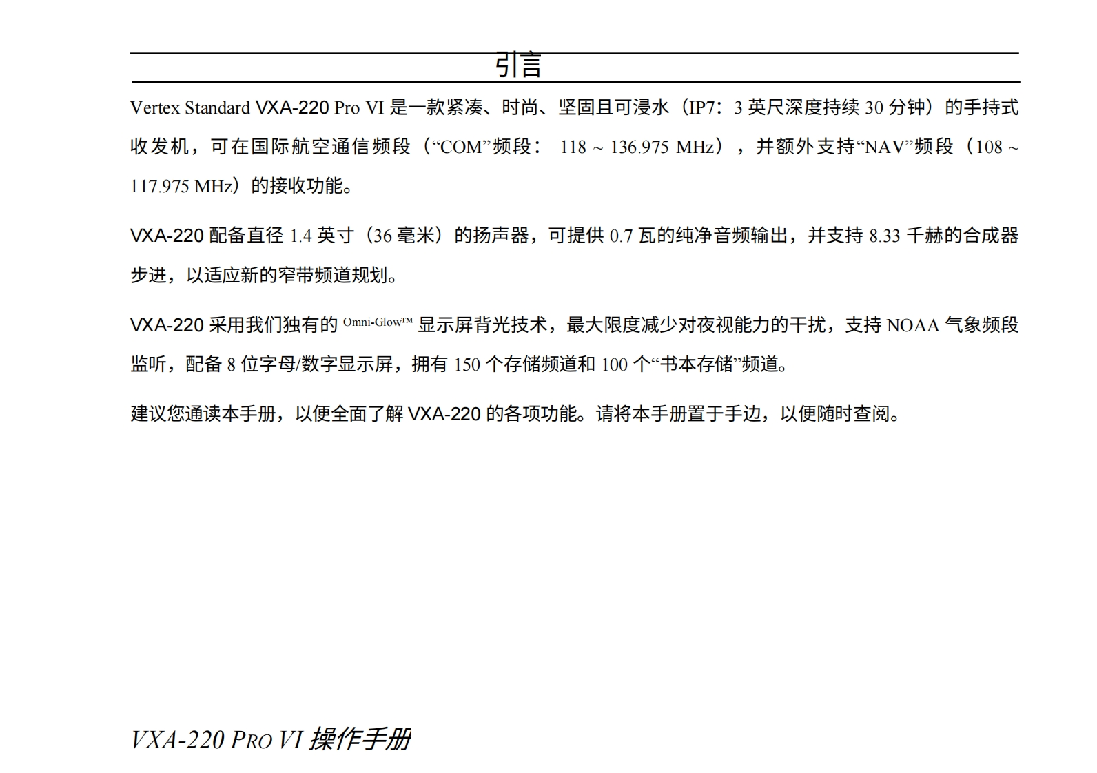 vertex-standard-VXA-220_操作说明书手册_ENG_USA_EC072N202_20111031-20260409中文版找手册网前天发布关注私信4.11MB105页034vertex-standard-VXA-220_操作说明书手册_ENG_USA_EC072N202_20111031-20260409中文版此内容为付费资源,请付费后查看¥19¥21黄金会员免费钻石会员免费登录购买付费资源 第1页 / 共105页 第2页 / 共105页 第3页 / 共105页 第4页 / 共105页 第5页 / 共105页 第6页 / 共105页 第7页 / 共105页 第8页 / 共105页 第9页 / 共105页 第10页 / 共105页 试读已结束,还剩95页,您可下载完整版后进行离线阅读 THE END威泰克斯 文本预览 s Vertex Standard航空频段收发机VXA-220Vertex Standard操作手册ANLVOxVXA-220ProVI123TIMERDIAL/AVDW1215456SBEEPSKIPSET7289SPL.WANLENTMWF 查看更多 收起部分 喜欢就支持一下吧收藏