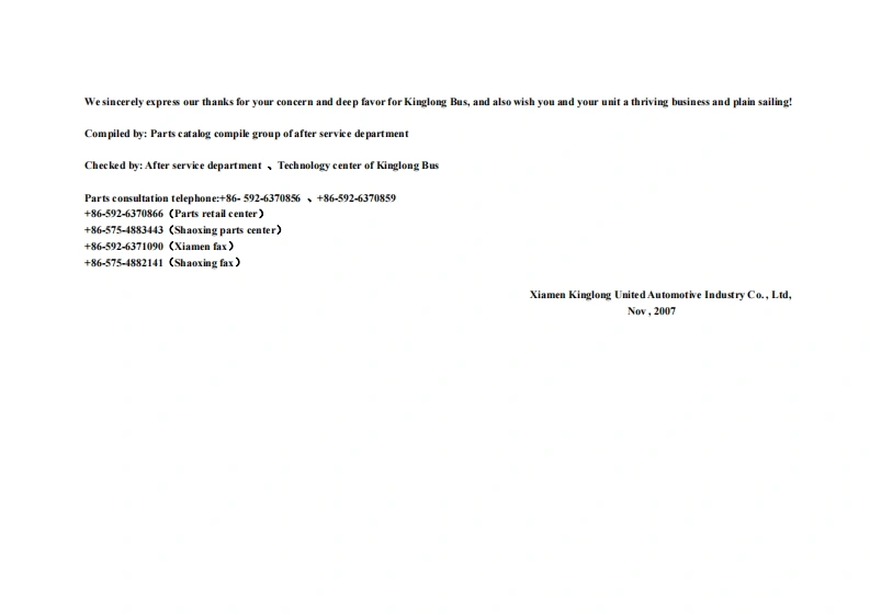 厦门金龙客车Kinglong_XMQ6127-YC6L330-20零部件目录手册图册找手册网3小时前发布关注私信8.88MB213页040厦门金龙客车Kinglong_XMQ6127-YC6L330-20零部件目录手册图册此内容为付费资源,请付费后查看¥39¥41黄金会员免费钻石会员免费登录购买付费资源 第1页 / 共213页 第2页 / 共213页 第3页 / 共213页 第4页 / 共213页 第5页 / 共213页 第6页 / 共213页 第7页 / 共213页 第8页 / 共213页 第9页 / 共213页 第10页 / 共213页 试读已结束,还剩203页,您可下载完整版后进行离线阅读 THE END陕汽/金龙 文本预览 金龙客车KING LONGXMQ6127配件图册Parts catalog (Saudi Arabia)厦门金龙联合汽车工业有限公司Xiamen King Long United Automotive Industry Co.,Ltd. 查看更多 收起部分 喜欢就支持一下吧收藏