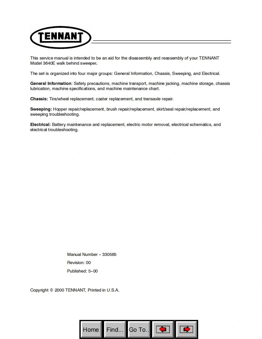 坦能清洗机洗地机3640-battery-service-manual维修手册含电器原理图找手册网昨天发布关注私信4.11MB180页036坦能清洗机洗地机3640-battery-service-manual维修手册含电器原理图此内容为付费资源,请付费后查看¥19¥21黄金会员免费钻石会员免费登录购买付费资源 第1页 / 共180页 第2页 / 共180页 第3页 / 共180页 第4页 / 共180页 第5页 / 共180页 第6页 / 共180页 第7页 / 共180页 第8页 / 共180页 第9页 / 共180页 第10页 / 共180页 试读已结束,还剩170页,您可下载完整版后进行离线阅读 THE ENDTENNANT(坦能) 文本预览 TENNANT3640EService Manual330565Rev.00(5-00)HomeFind...Go To 查看更多 收起部分 喜欢就支持一下吧收藏