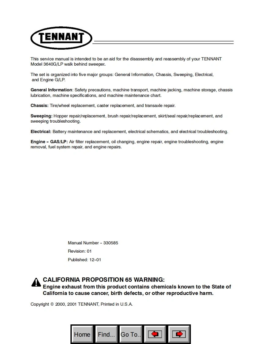 坦能清洗机洗地机3640-gas-lpg-service-manual维修手册含电器原理图找手册网昨天发布关注私信6.79MB190页048坦能清洗机洗地机3640-gas-lpg-service-manual维修手册含电器原理图此内容为付费资源,请付费后查看¥19¥21黄金会员免费钻石会员免费登录购买付费资源 第1页 / 共190页 第2页 / 共190页 第3页 / 共190页 第4页 / 共190页 第5页 / 共190页 第6页 / 共190页 第7页 / 共190页 第8页 / 共190页 第9页 / 共190页 第10页 / 共190页 试读已结束,还剩180页,您可下载完整版后进行离线阅读 THE ENDTENNANT(坦能) 文本预览 TENNANT3640G/LPService Manual洲330585Rev.01(12-01)HomeFind...Go To 查看更多 收起部分 喜欢就支持一下吧收藏