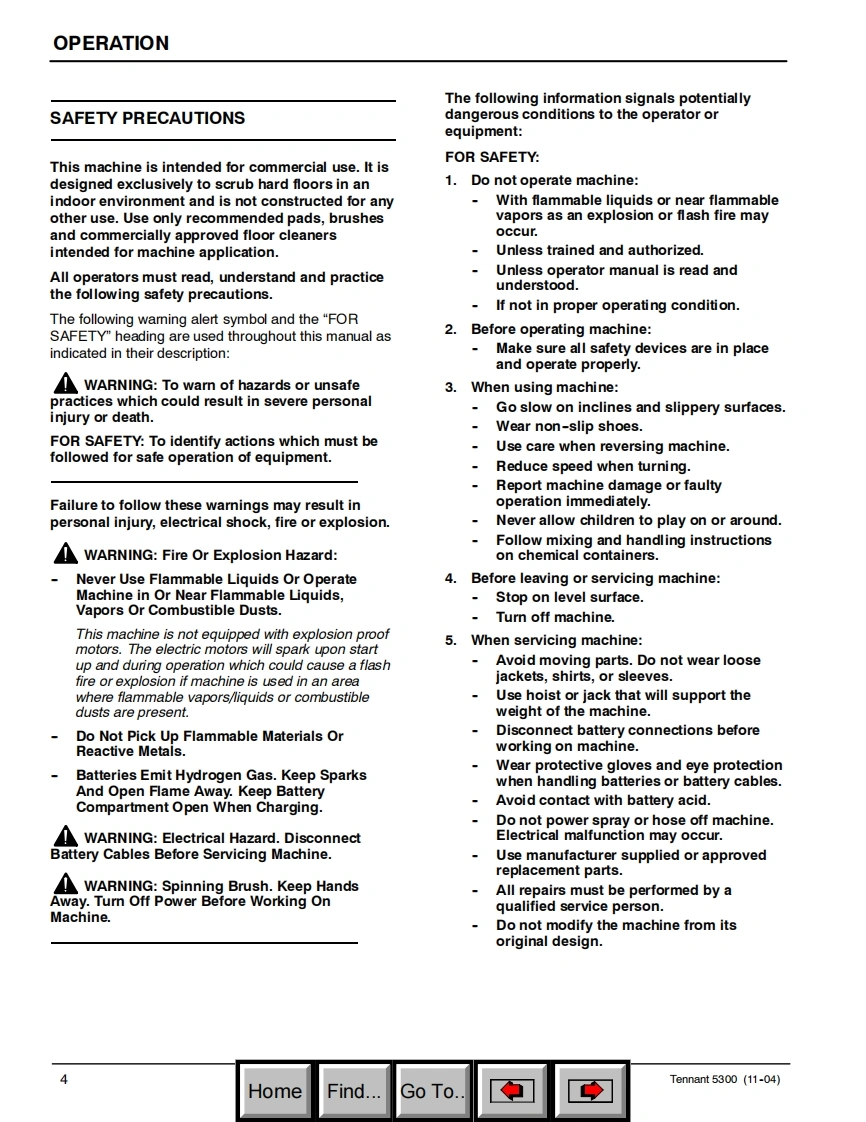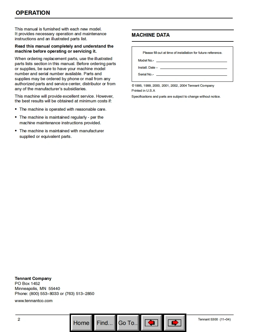 坦能清洗机洗地机5300_parts_and_operator_manual_11-2004_and_up维修手册含电器原理图找手册网昨天发布关注私信3.03MB80页039坦能清洗机洗地机5300_parts_and_operator_manual_11-2004_and_up维修手册含电器原理图此内容为付费资源,请付费后查看¥19¥21黄金会员免费钻石会员免费登录购买付费资源 第1页 / 共80页 第2页 / 共80页 第3页 / 共80页 第4页 / 共80页 第5页 / 共80页 第6页 / 共80页 第7页 / 共80页 第8页 / 共80页 第9页 / 共80页 第10页 / 共80页 试读已结束,还剩70页,您可下载完整版后进行离线阅读 THE ENDTENNANT(坦能) 文本预览 TENNANT5300Automatic ScrubberModel No.:Operator and Parts Manual300000PAC300000603053606445TENNANT173420Rev.07(11-04)HomeFind...Go To. 查看更多 收起部分 喜欢就支持一下吧收藏