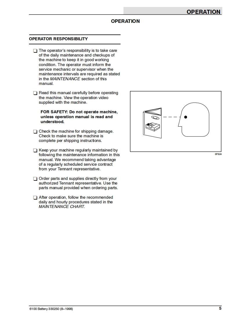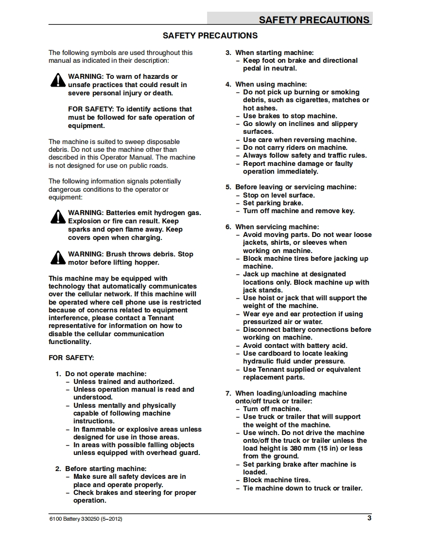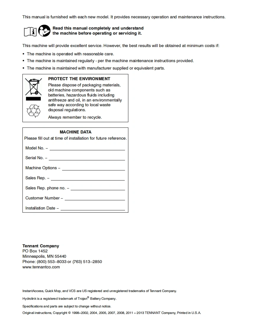 TENNANT6100(Battery)Rider SweeperOperator Manual个西VCSFilter ShakerTennant True®PartsIRISTM a Tennant TechnologyNorth America InternationalTo view,print or download330250the latest manual.visit:ReV.13(10-2013)▣www.tennantco.com/manuals