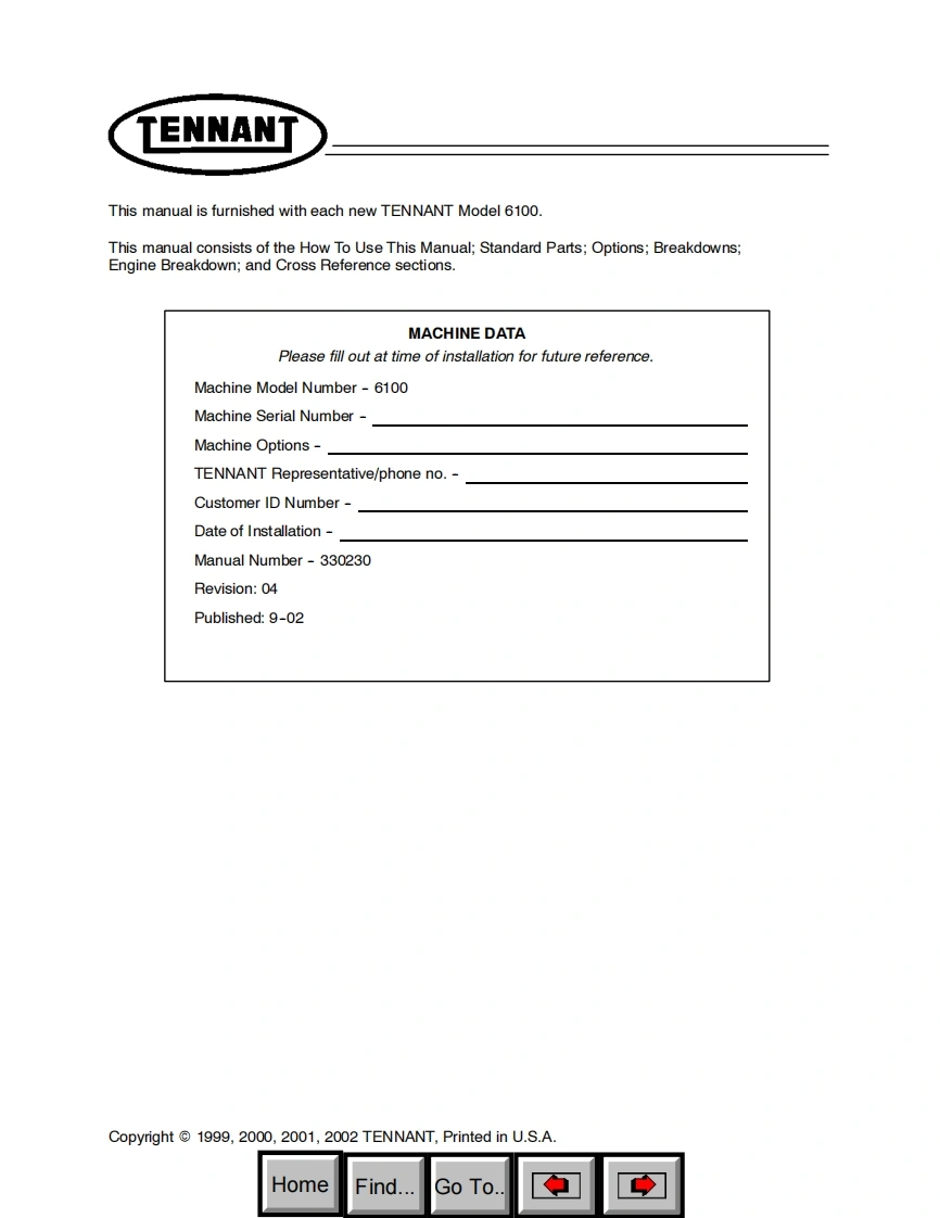 坦能清洗机洗地机6100_Gas-LPG_parts_manual维修手册含电器原理图找手册网昨天发布关注私信3.46MB152页047坦能清洗机洗地机6100_Gas-LPG_parts_manual维修手册含电器原理图此内容为付费资源,请付费后查看¥19¥21黄金会员免费钻石会员免费登录购买付费资源 第1页 / 共152页 第2页 / 共152页 第3页 / 共152页 第4页 / 共152页 第5页 / 共152页 第6页 / 共152页 第7页 / 共152页 第8页 / 共152页 第9页 / 共152页 第10页 / 共152页 试读已结束,还剩142页,您可下载完整版后进行离线阅读 THE ENDTENNANT(坦能) 文本预览 TENNANT6100Parts Manual330230Rev.04HomeFind.Go To 查看更多 收起部分 喜欢就支持一下吧收藏