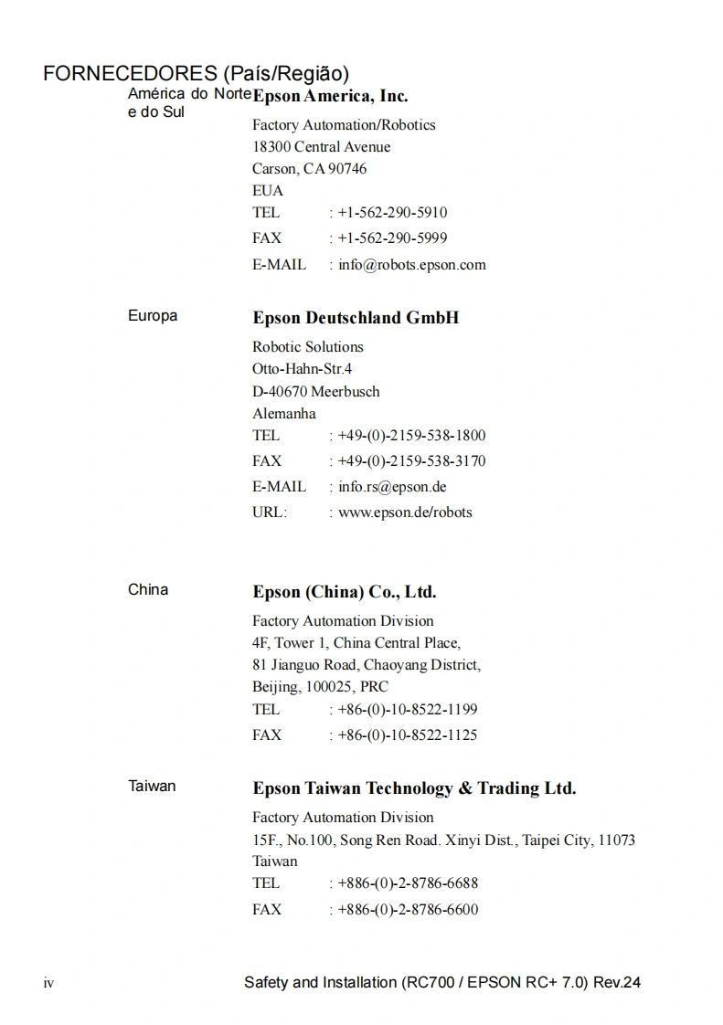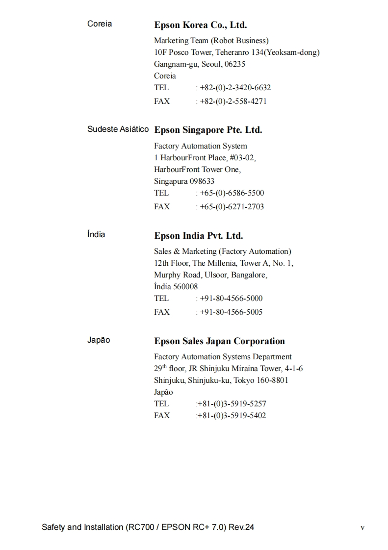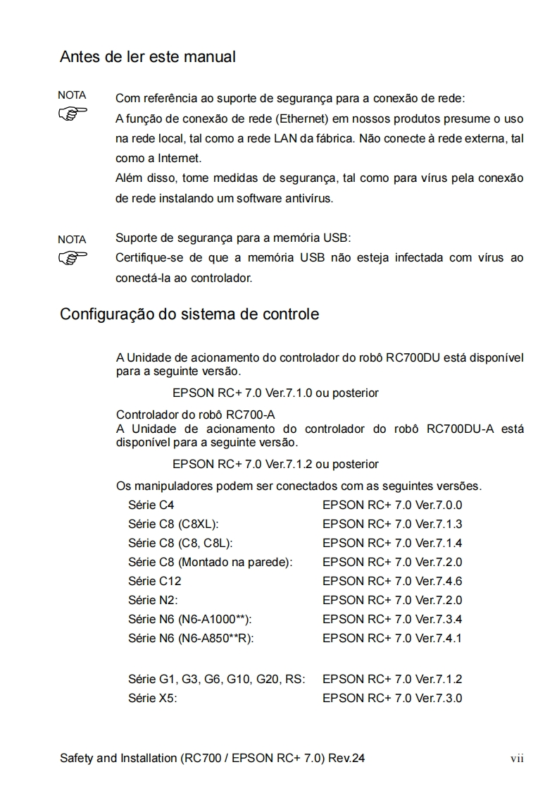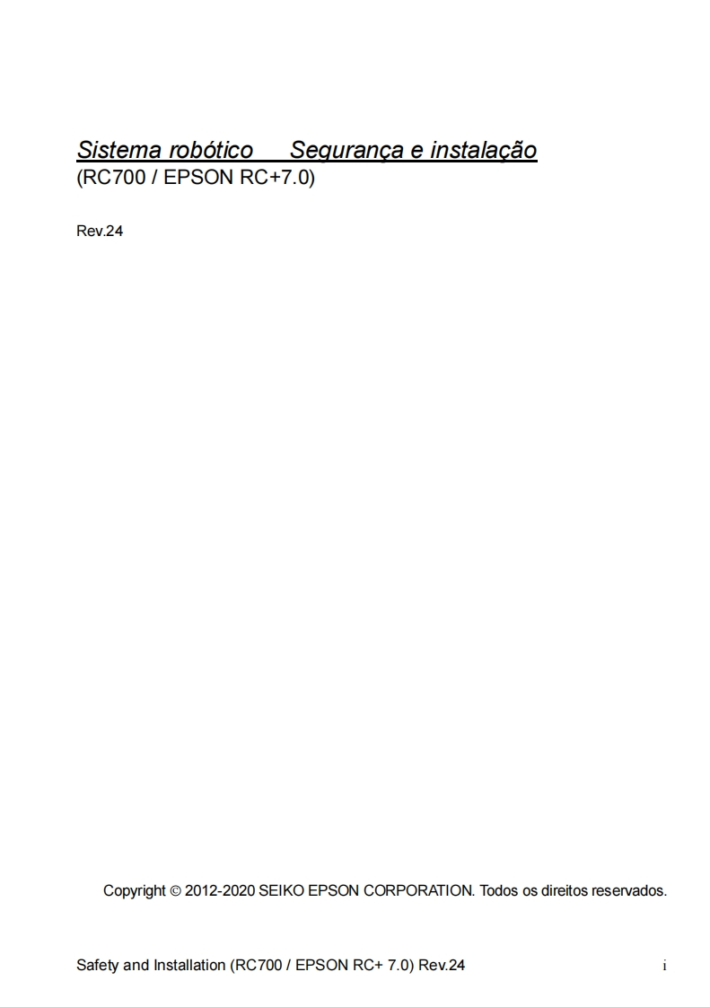 EPSONSistema roboticoSeguranca e instalacaoLeia este manual primeiroRev.24EM208B4457FControlador do rob6 Unidade de controle RC700RC700-AUnidade de acionamento RC700DURC700DU-ASoftware de programagao EPSON RC+7.0Manipulador das series G1 G3 G6 G10 G20Serie RSSerie C4 C8 C12Serie N2 N6Serie X5CPD-60431