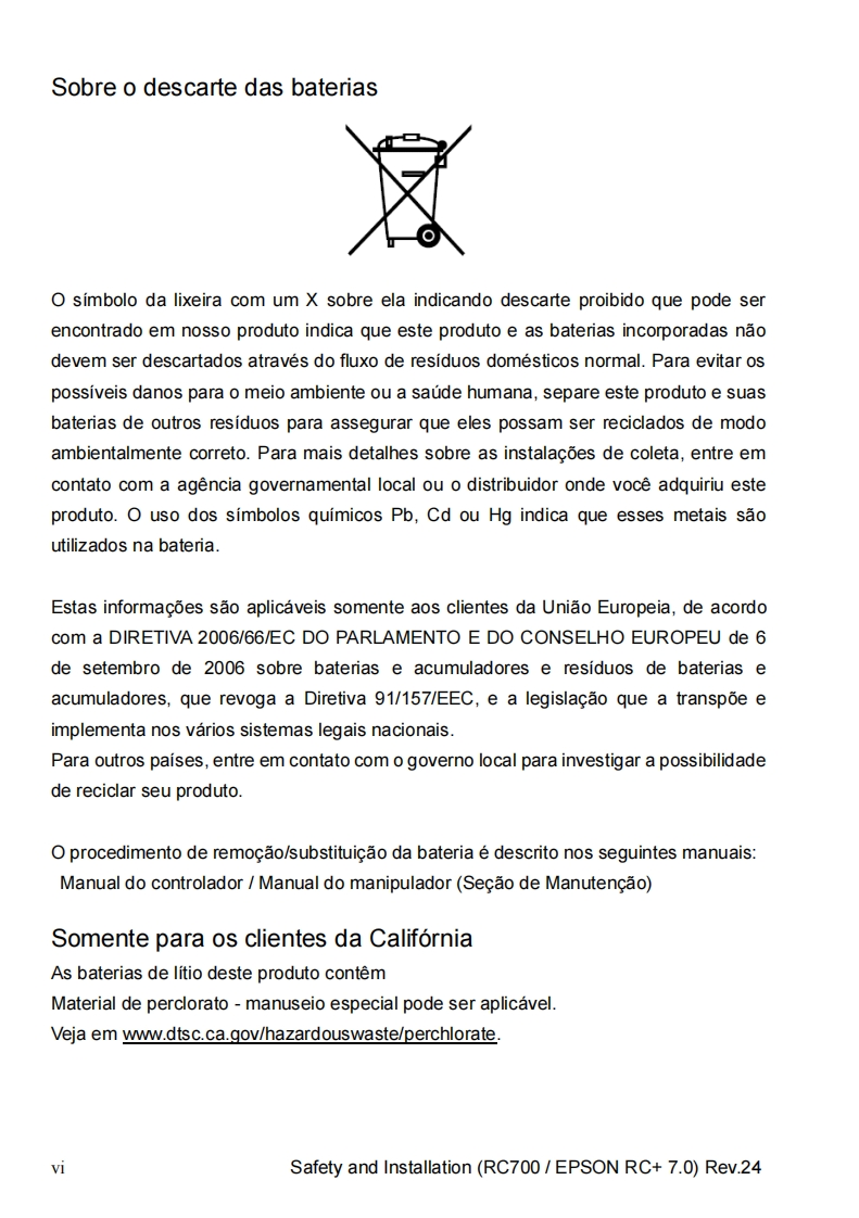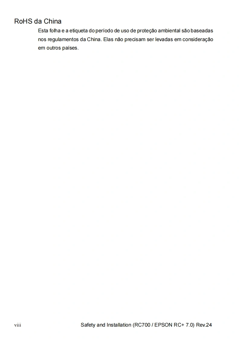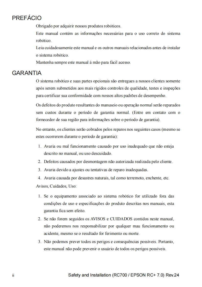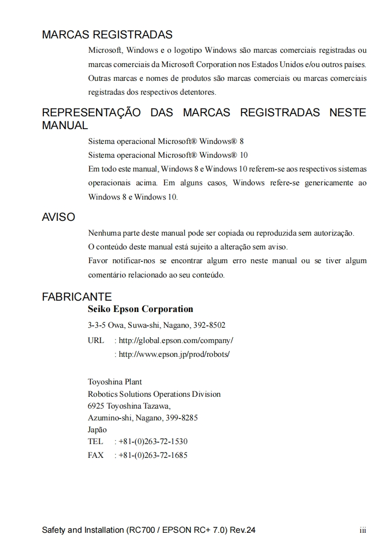 EPSONSistema roboticoSeguranca e instalacaoLeia este manual primeiroRev.24EM208B4457FControlador do rob6 Unidade de controle RC700RC700-AUnidade de acionamento RC700DURC700DU-ASoftware de programagao EPSON RC+7.0Manipulador das series G1 G3 G6 G10 G20Serie RSSerie C4 C8 C12Serie N2 N6Serie X5CPD-60431