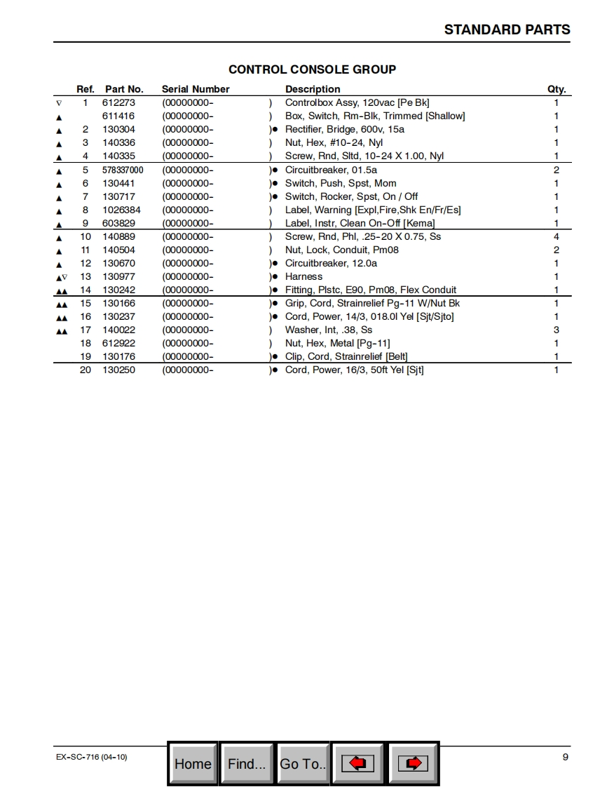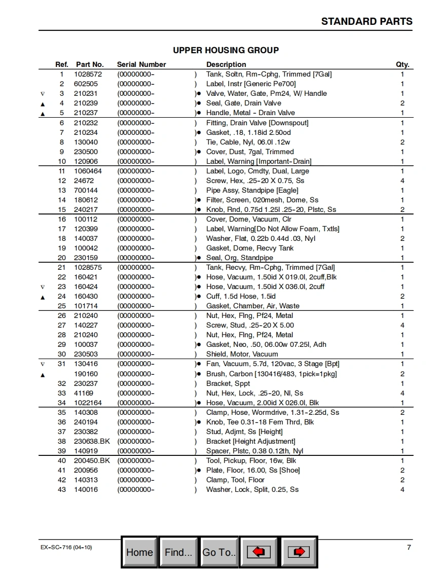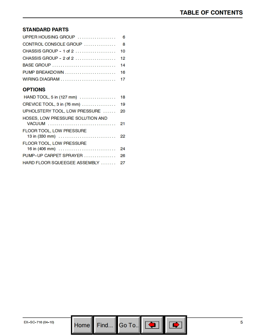 坦能清洗机洗地机EX-SC-716_parts_manual维修手册含电器原理图找手册网昨天发布关注私信1.35MB27页032坦能清洗机洗地机EX-SC-716_parts_manual维修手册含电器原理图此内容为付费资源,请付费后查看¥19¥21黄金会员免费钻石会员免费登录购买付费资源 第1页 / 共27页 第2页 / 共27页 第3页 / 共27页 第4页 / 共27页 第5页 / 共27页 第6页 / 共27页 第7页 / 共27页 第8页 / 共27页 第9页 / 共27页 第10页 / 共27页 试读已结束,还剩17页,您可下载完整版后进行离线阅读 THE ENDTENNANT(坦能) 文本预览 TENNANTBy Tennant CompanyEX-SC-716Self Contained Carpet ExtractorParts Manual@0Model Part No.:9007484-EX-SC-716(120V)TENNANT9007533www.tennantco.comRev.00(04-2010)N▣BLESwww.nobles.comHomeFind...Go To. 查看更多 收起部分 喜欢就支持一下吧收藏