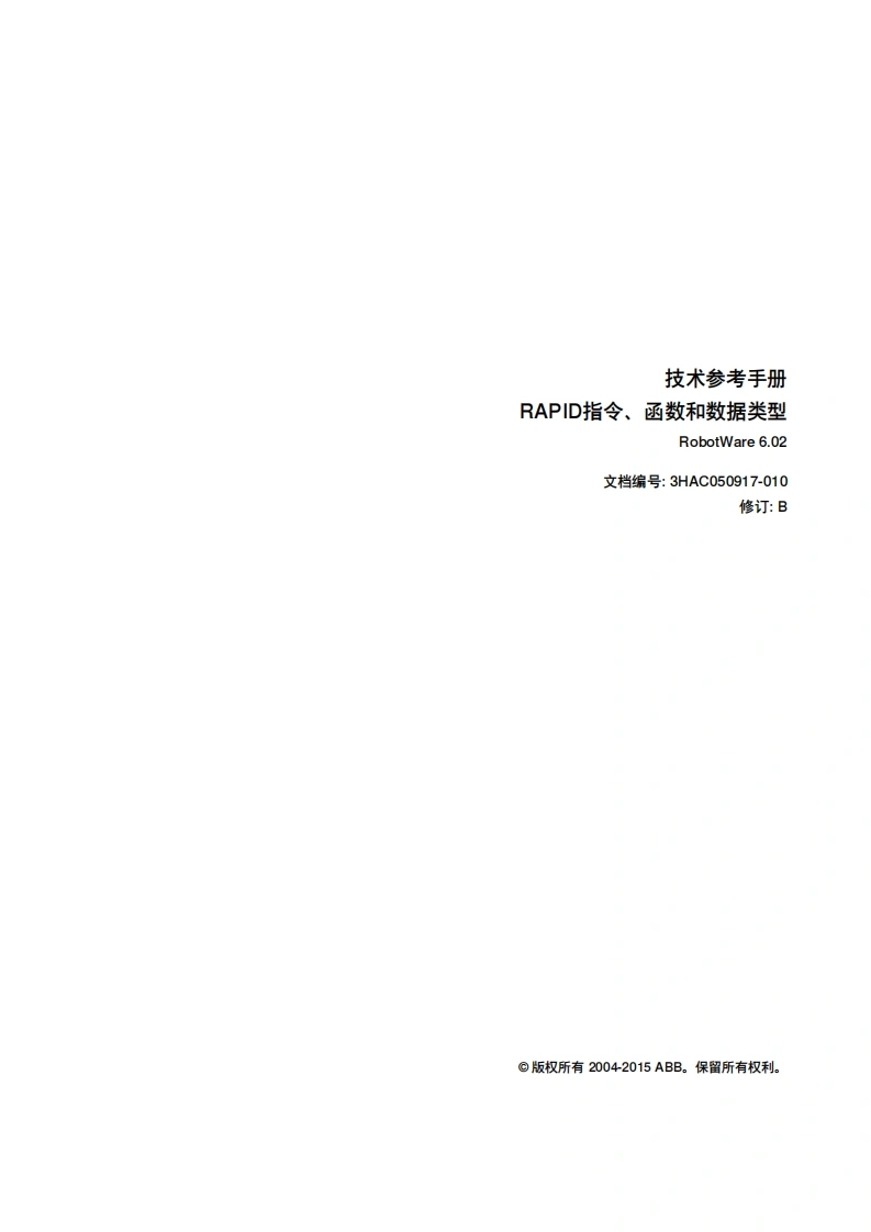 ABB机器人指令功能数据说明书手册找手册网昨天发布关注私信9.21MB1454页040ABB机器人指令功能数据说明书手册此内容为付费资源,请付费后查看¥19¥21黄金会员免费钻石会员免费登录购买付费资源 第1页 / 共1454页 第2页 / 共1454页 第3页 / 共1454页 第4页 / 共1454页 第5页 / 共1454页 第6页 / 共1454页 第7页 / 共1454页 第8页 / 共1454页 第9页 / 共1454页 第10页 / 共1454页 试读已结束,还剩1444页,您可下载完整版后进行离线阅读 THE ENDABB 文本预览 技术参考手册RAPID指令、i函数和数据类型Power and productivityfor a better worldTMABB 查看更多 收起部分 喜欢就支持一下吧收藏