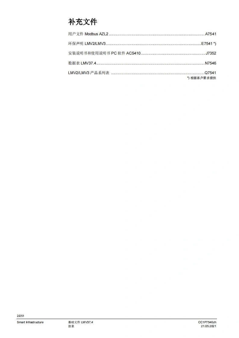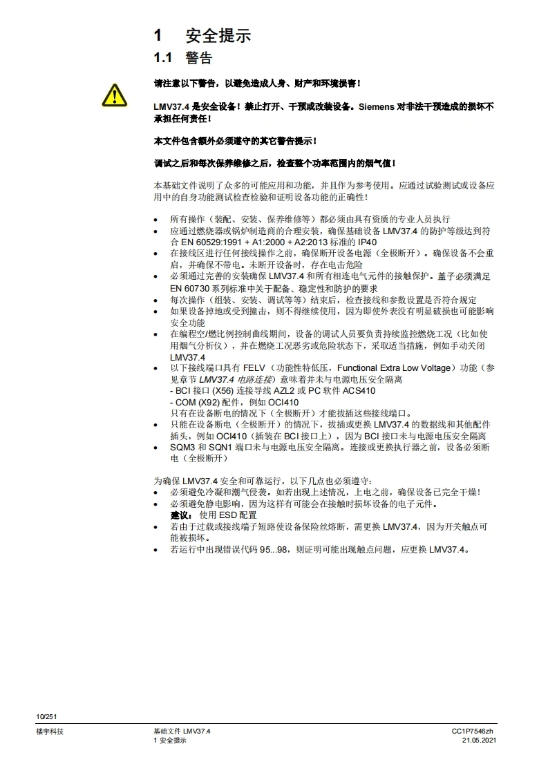 siemens西门子LMV37.400AxLMV37.420Ax基础文件-中文安装操作说明书手册找手册网昨天发布关注私信5.88MB251页040siemens西门子LMV37.400AxLMV37.420Ax基础文件-中文安装操作说明书手册此内容为付费资源,请付费后查看¥19¥21黄金会员免费钻石会员免费登录购买付费资源 第1页 / 共251页 第2页 / 共251页 第3页 / 共251页 第4页 / 共251页 第5页 / 共251页 第6页 / 共251页 第7页 / 共251页 第8页 / 共251页 第9页 / 共251页 第10页 / 共251页 试读已结束,还剩241页,您可下载完整版后进行离线阅读 THE END西门子 文本预览 SIEMENS园CE0可LMV37.400AxLMV37.420Ax用于鼓风式燃烧器的电子空燃比燃烧控制系统基础文件LMN37.4以及本基础文件专供其产品中使用LMV37.4的原始设备制造商(OEM)使用!软件版本V03.80CC1P7546zhSmart Infrastructure21.052021 查看更多 收起部分 喜欢就支持一下吧收藏