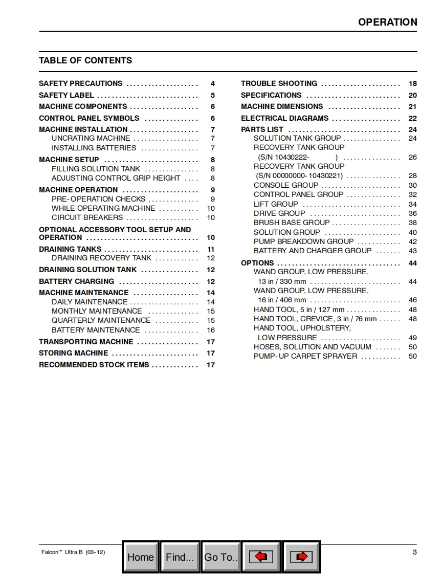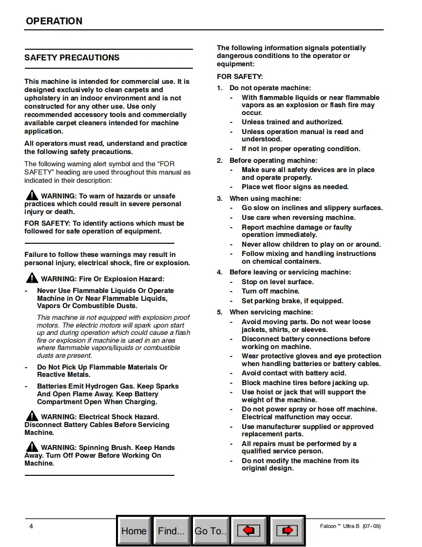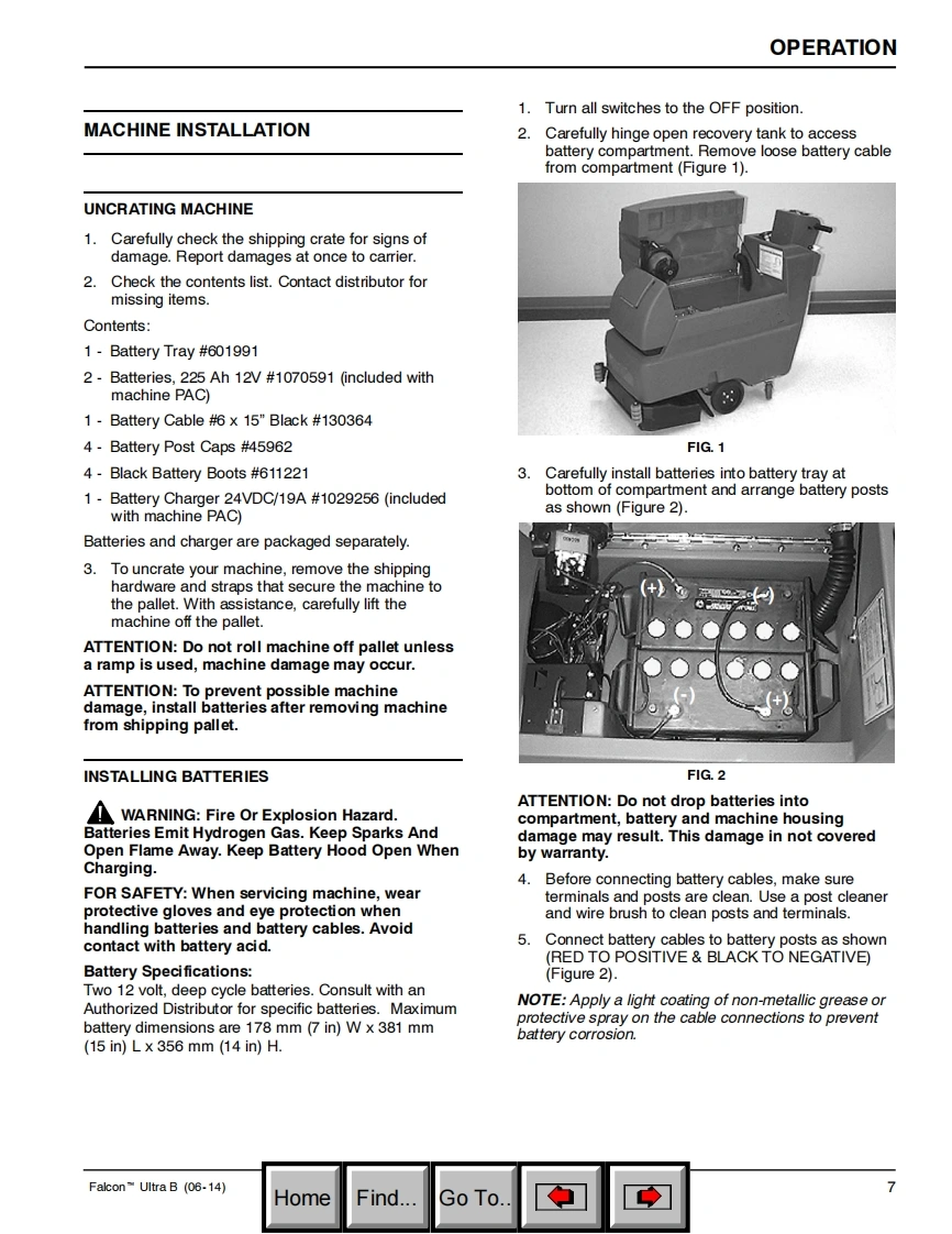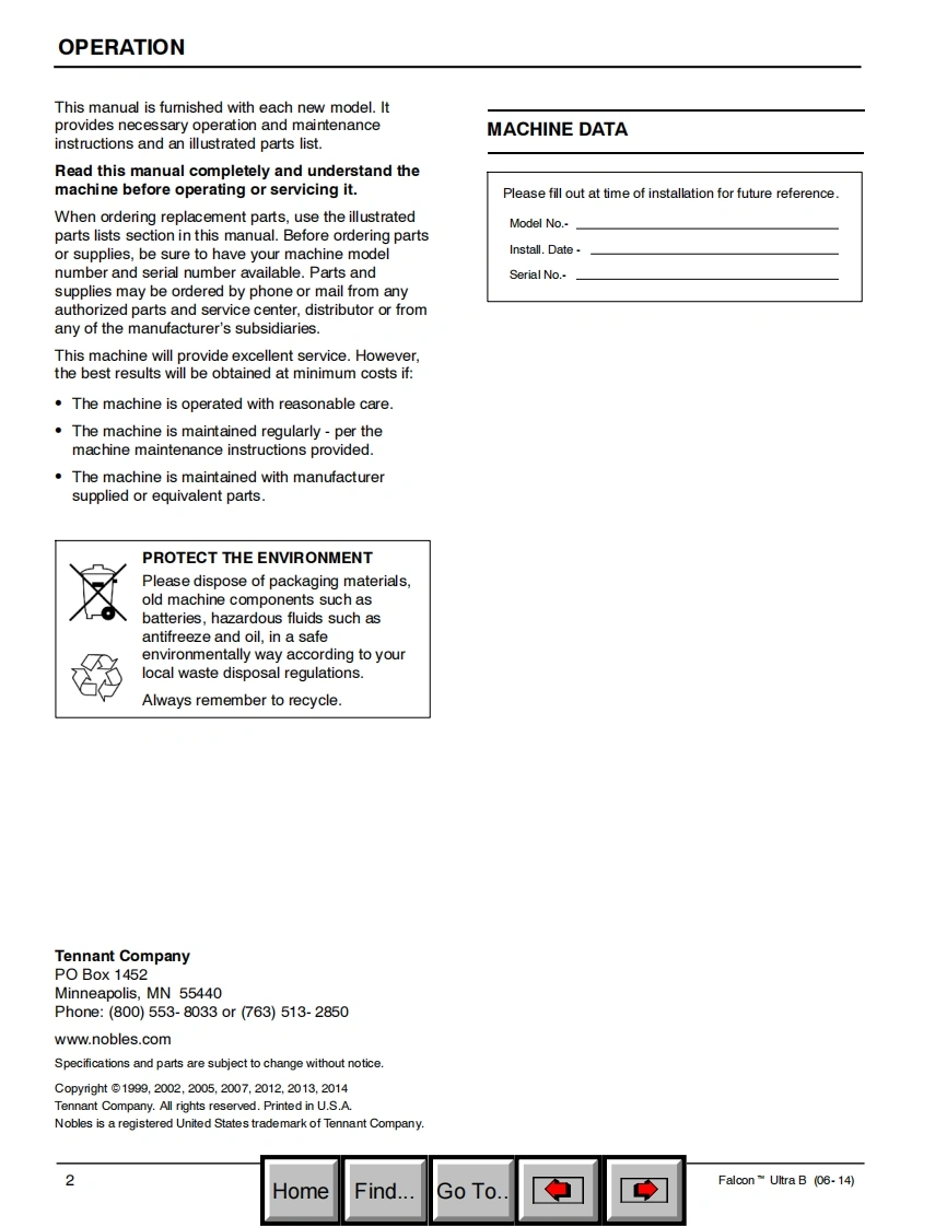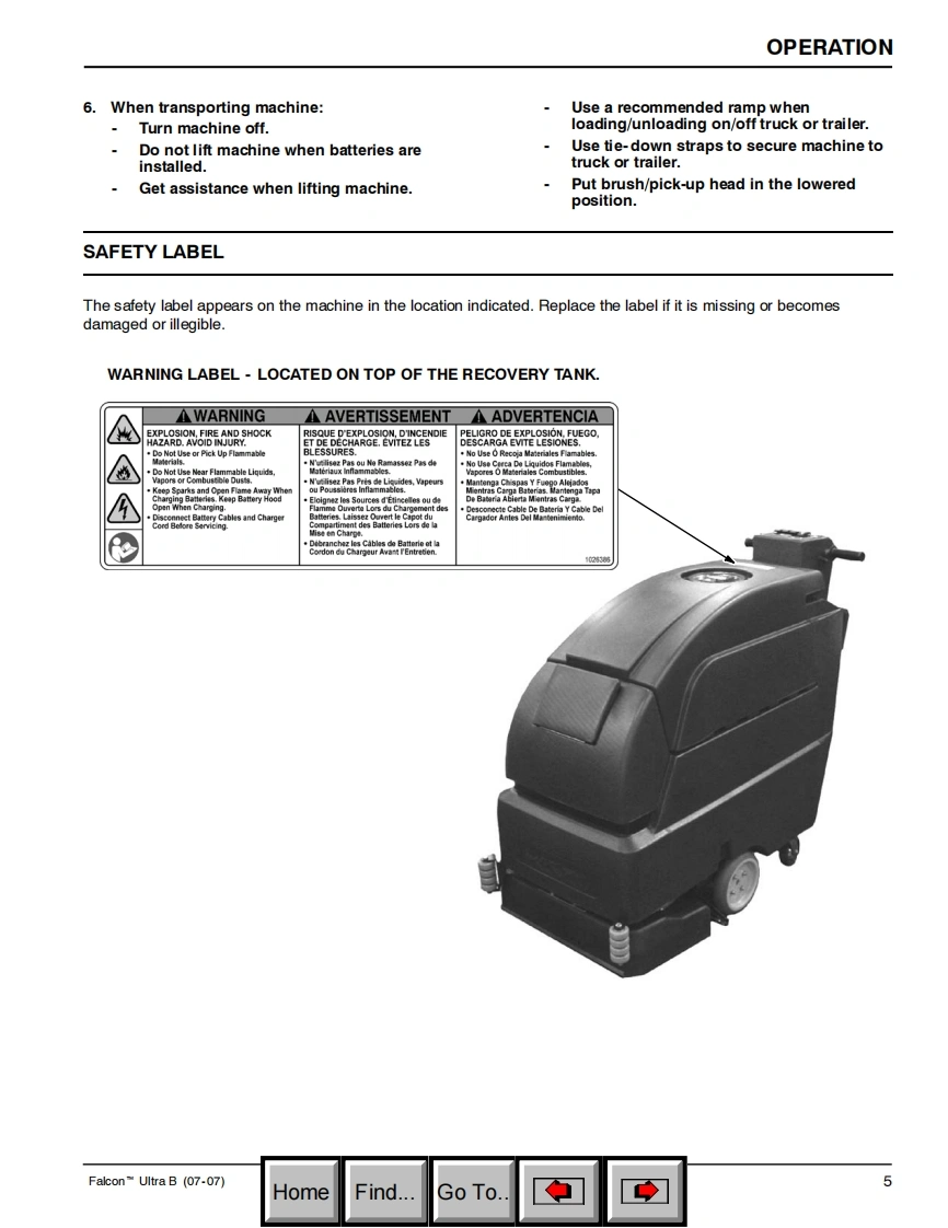 NNOBLESModel Part No.:608350FALCONTM ULTRA B608351-PACBATTERY AUTOMATIC CARPET EXTRACTOROPERATOR AND PARTS MANUAL回回For the latest Parts manuals and otherlanguage Operator manuals,visit:608418www.nobles.com/manualsRev.06(06-2014)www.nobles.comHomeFind...Go To.