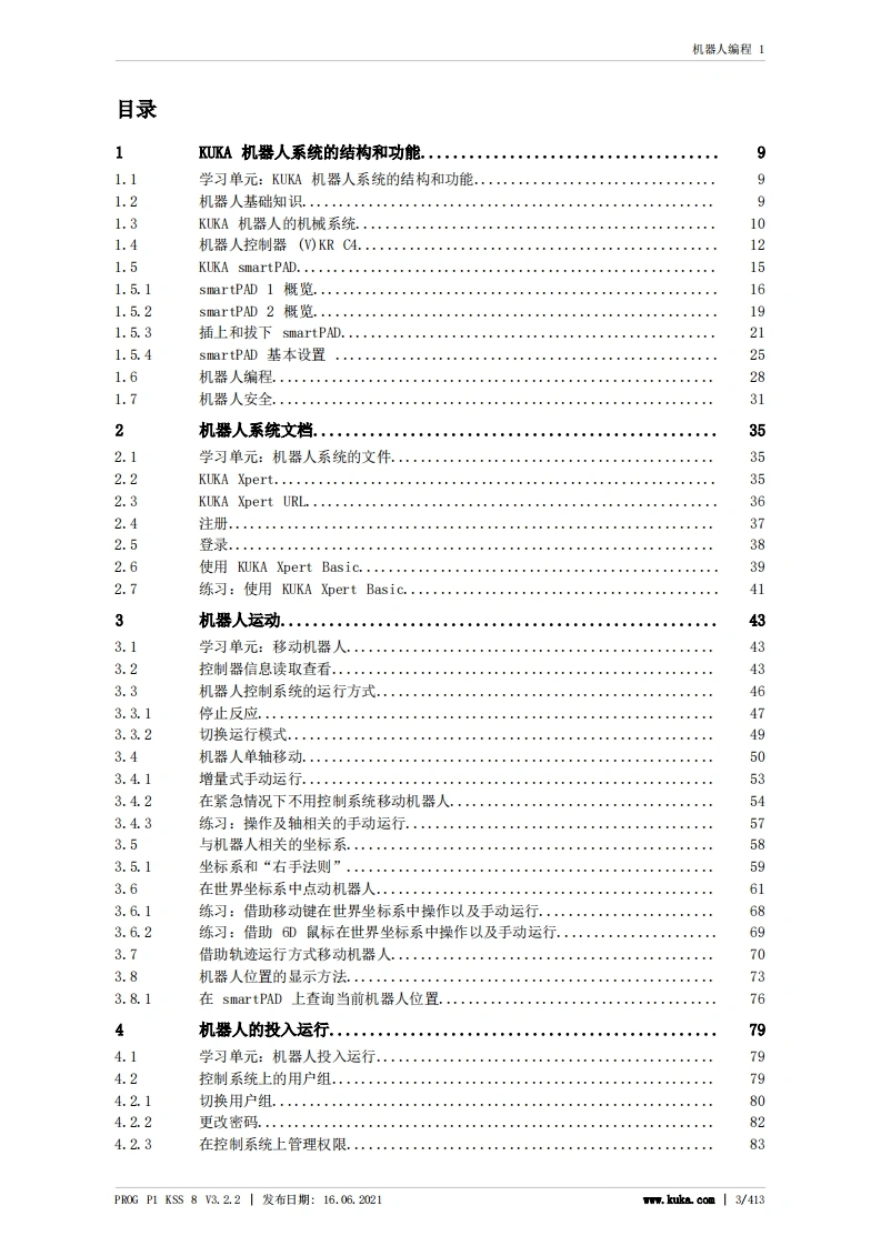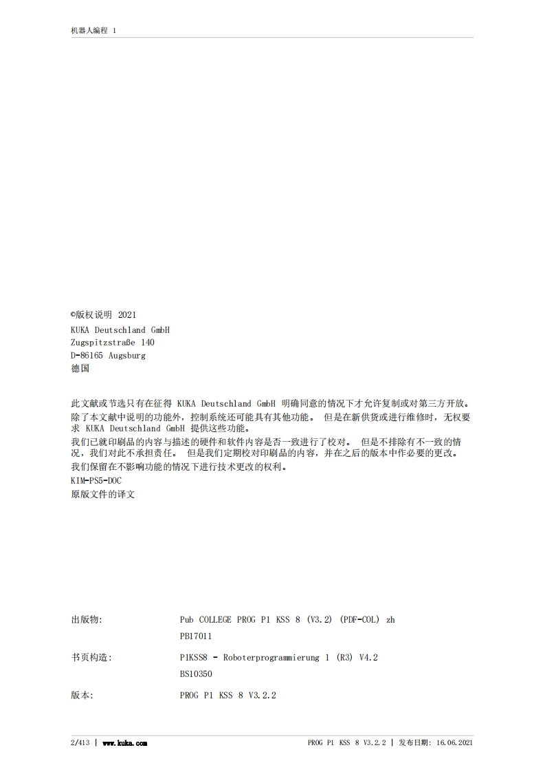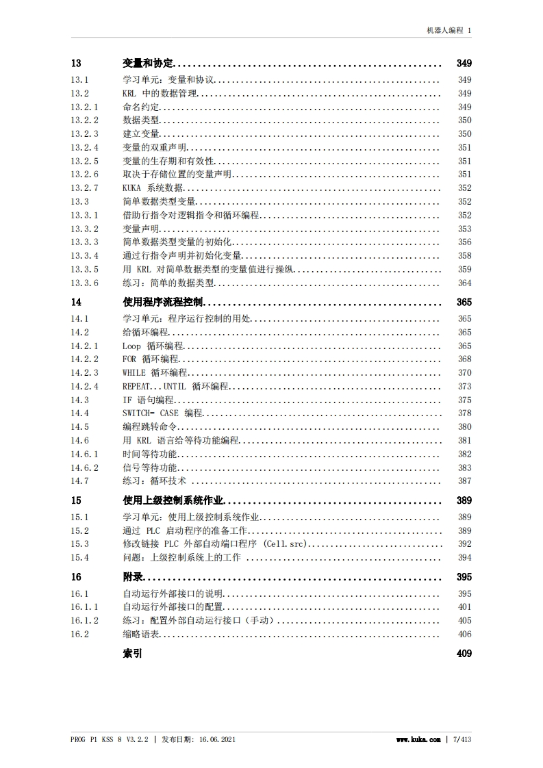 ABB机器人机器人编程1说明书手册找手册网昨天发布关注私信65.32MB413页027ABB机器人机器人编程1说明书手册此内容为付费资源,请付费后查看¥19¥21黄金会员免费钻石会员免费登录购买付费资源 第1页 / 共413页 第2页 / 共413页 第3页 / 共413页 第4页 / 共413页 第5页 / 共413页 第6页 / 共413页 第7页 / 共413页 第8页 / 共413页 第9页 / 共413页 第10页 / 共413页 试读已结束,还剩403页,您可下载完整版后进行离线阅读 THE ENDABB 文本预览 KUKATraining机器人编程1KUKA System Software 8.6KUKA College培训资料发布日期:16.06.2021PROG P1 KSS 8 V3.2.2KUKA Deutschland GmbH 查看更多 收起部分 喜欢就支持一下吧收藏