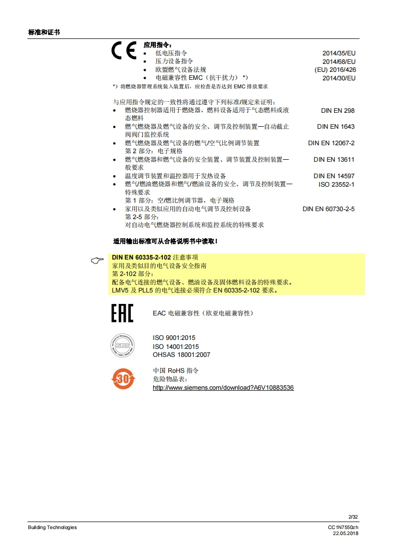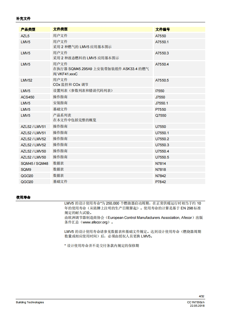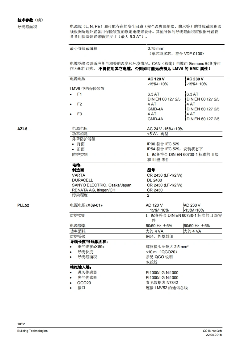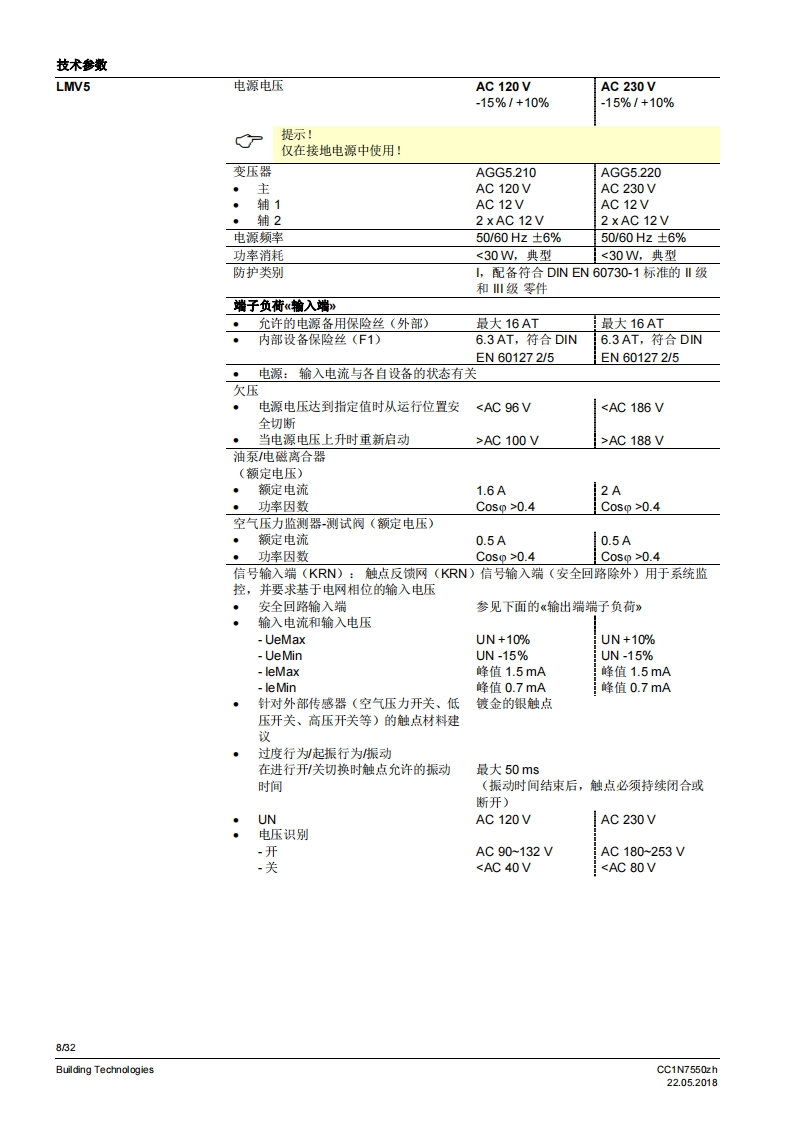 SIEMENS7550燃烧器管理系统LMV5...LMV50带有内置燃料空气比例控制和鼓风燃烧器功率调节功能的燃烧器管理系统。具有适用于工业应用的特殊功能。LMV51带有内置燃料空气比例控制和鼓风燃烧器功率调节功能的燃烧器管理系统。LMV52带有内置燃料空气比例控制和搭配辅助氧气调节系统的鼓风燃烧器功率调节功能的燃烧器管理系统。LV5以及本资料专供在其设备中集成使用MV5的原始设备制造商(OEM)使用I应用燃烧器管理系统LMV5是微处理器控制的自动装置,并配备相关的系统部件,用于大中型功率鼓风燃烧器的控制和监测。提示警告!LMV5基础文件P7550中给出的所有安全、警告和技术信息也必须显示在本文件中I适用于软件版本LMV50:V10.30MW51:V05.20LMV51.3:V05.20MW52.2:V05.20LMV52.4:V10.30内部功率调节器模块:V02.10内部变频器模块:V01.50AZL52V05.10PL52:V01.50Building TechnologiesCC1N7550zh22.052018