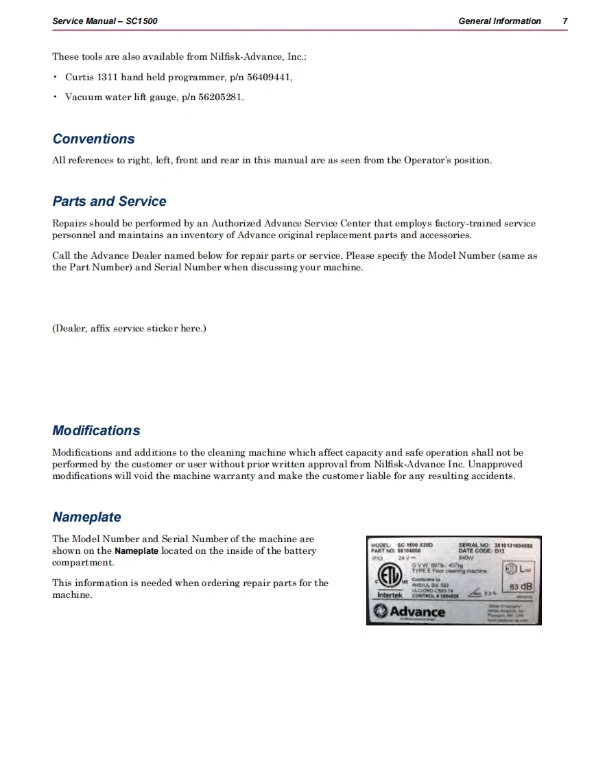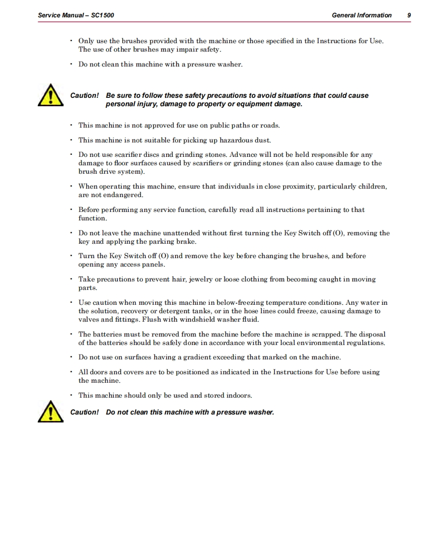 坦能清洗机洗地机SC1500_Operators_Manual维修手册含电器原理图找手册网昨天发布关注私信3.72MB136页041坦能清洗机洗地机SC1500_Operators_Manual维修手册含电器原理图此内容为付费资源,请付费后查看¥19¥21黄金会员免费钻石会员免费登录购买付费资源 第1页 / 共136页 第2页 / 共136页 第3页 / 共136页 第4页 / 共136页 第5页 / 共136页 第6页 / 共136页 第7页 / 共136页 第8页 / 共136页 第9页 / 共136页 第10页 / 共136页 试读已结束,还剩126页,您可下载完整版后进行离线阅读 THE ENDTENNANT(坦能) 文本预览 SC1500C1500随YService ManualAdvance SC1500 Models::56104000(X20D),56104001(X20R)Nilfisk SC1500 Models:56104002(SC1500-51D)AdvanceEnglish5/13 Form No.56043166 查看更多 收起部分 喜欢就支持一下吧收藏