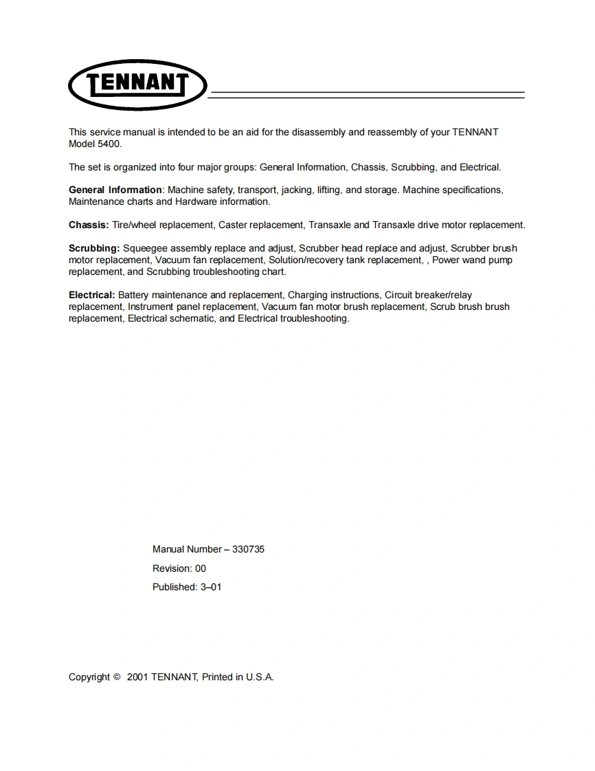坦能清洗机洗地机tennant-5400-walk-behind-floor-scrubber-service-manual维修手册含电器原理图找手册网昨天发布关注私信2.93MB164页027坦能清洗机洗地机tennant-5400-walk-behind-floor-scrubber-service-manual维修手册含电器原理图此内容为付费资源,请付费后查看¥19¥21黄金会员免费钻石会员免费登录购买付费资源 第1页 / 共164页 第2页 / 共164页 第3页 / 共164页 第4页 / 共164页 第5页 / 共164页 第6页 / 共164页 第7页 / 共164页 第8页 / 共164页 第9页 / 共164页 第10页 / 共164页 试读已结束,还剩154页,您可下载完整版后进行离线阅读 THE ENDTENNANT(坦能) 文本预览 TENNANT5400Service ManualTENNANT写4回回@330735Rev.00(3-01) 查看更多 收起部分 喜欢就支持一下吧收藏