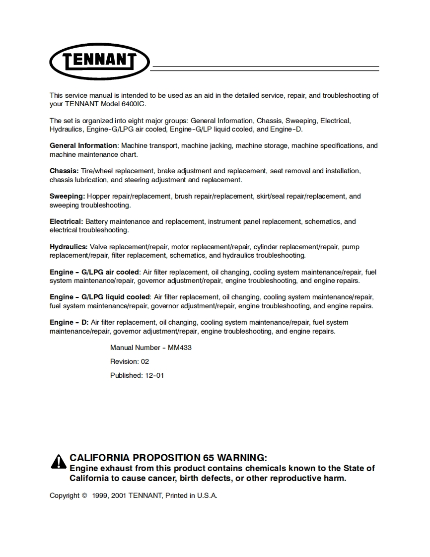 坦能清洗机洗地机tennant-6400ic-rider-floor-sweeper-service-manual维修手册含电器原理图找手册网昨天发布关注私信30.64MB424页037坦能清洗机洗地机tennant-6400ic-rider-floor-sweeper-service-manual维修手册含电器原理图此内容为付费资源,请付费后查看¥19¥21黄金会员免费钻石会员免费登录购买付费资源 第1页 / 共424页 第2页 / 共424页 第3页 / 共424页 第4页 / 共424页 第5页 / 共424页 第6页 / 共424页 第7页 / 共424页 第8页 / 共424页 第9页 / 共424页 第10页 / 共424页 试读已结束,还剩414页,您可下载完整版后进行离线阅读 THE ENDTENNANT(坦能) 文本预览 TENNANT64001CService Manual回園MM433Rev.02 查看更多 收起部分 喜欢就支持一下吧收藏