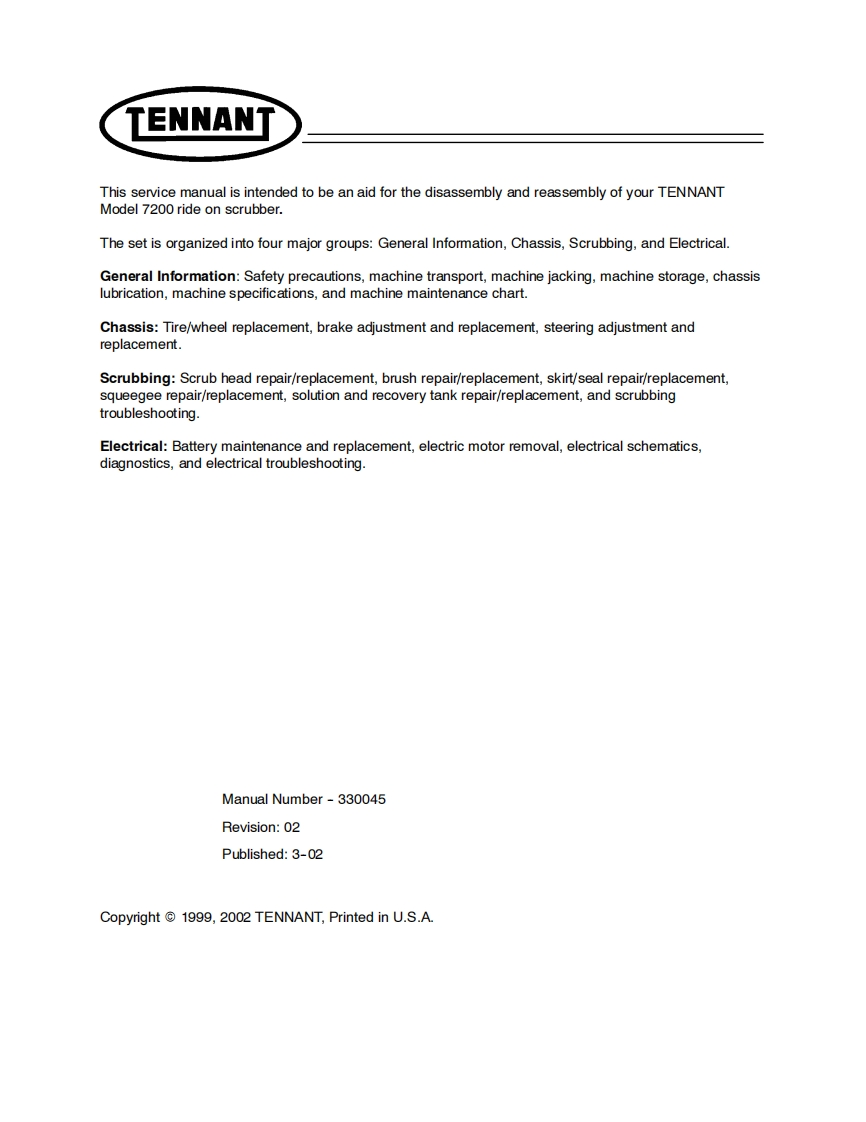 坦能清洗机洗地机tennant-7200-rider-floor-scrubber-service-manual维修手册含电器原理图找手册网昨天发布关注私信22.60MB270页034坦能清洗机洗地机tennant-7200-rider-floor-scrubber-service-manual维修手册含电器原理图此内容为付费资源,请付费后查看¥19¥21黄金会员免费钻石会员免费登录购买付费资源 第1页 / 共270页 第2页 / 共270页 第3页 / 共270页 第4页 / 共270页 第5页 / 共270页 第6页 / 共270页 第7页 / 共270页 第8页 / 共270页 第9页 / 共270页 第10页 / 共270页 试读已结束,还剩260页,您可下载完整版后进行离线阅读 THE ENDTENNANT(坦能) 文本预览 TENNANT7200Service ManualENHARI国330045Rev.02(3-02) 查看更多 收起部分 喜欢就支持一下吧收藏