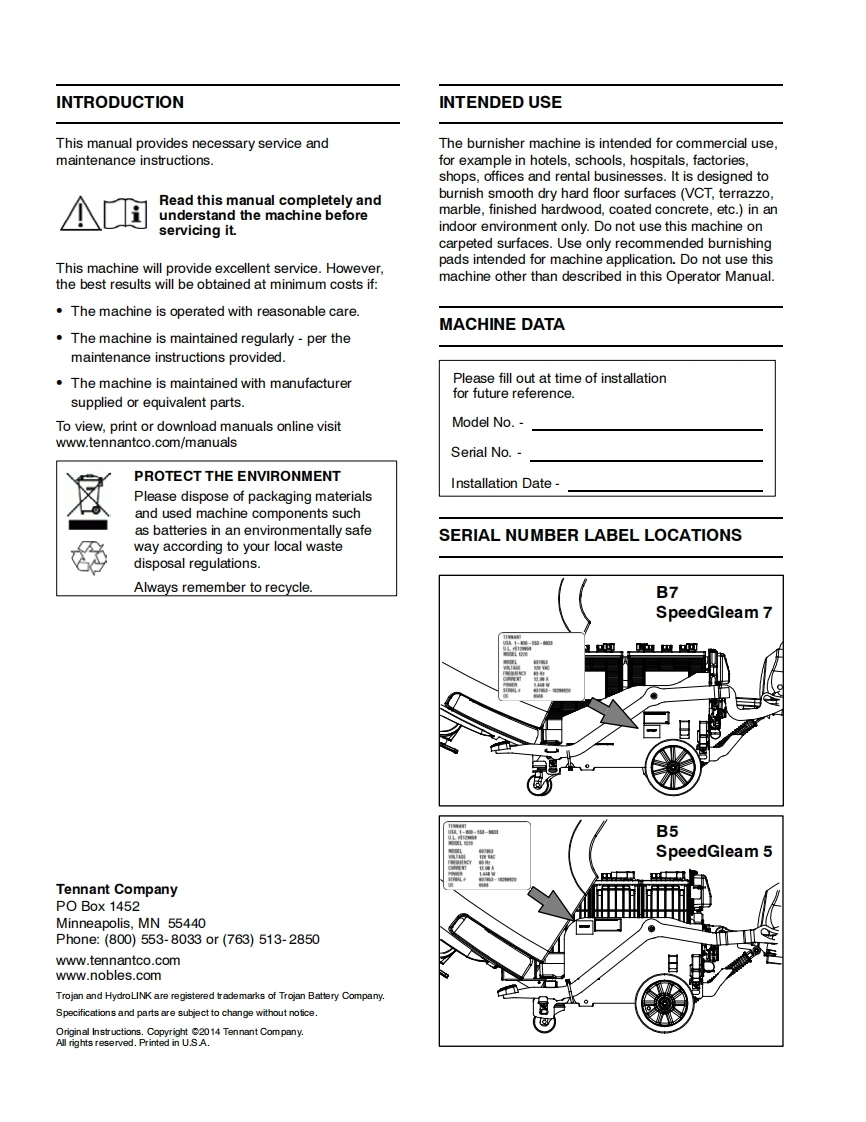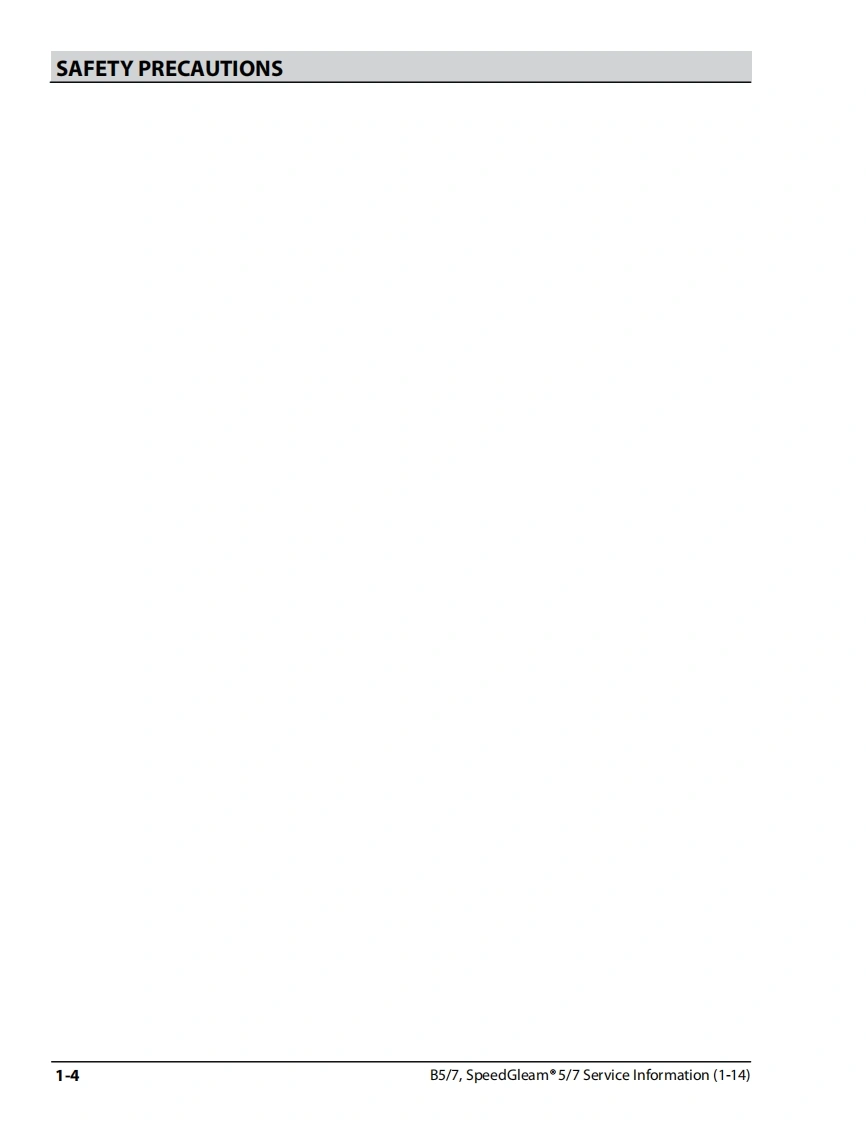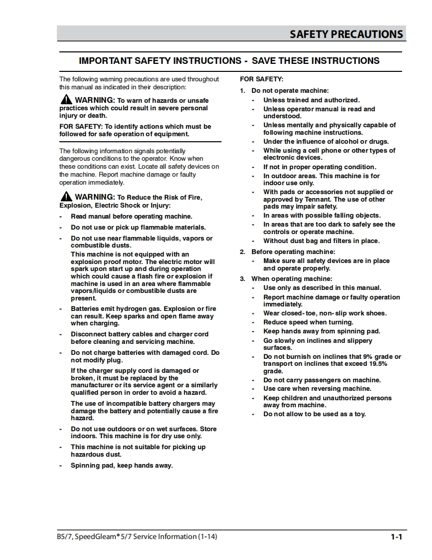 坦能清洗机洗地机tennant-b5-b7-walk-behind-floor-burnisher-service-manual维修手册含电器原理图找手册网昨天发布关注私信5.89MB64页021坦能清洗机洗地机tennant-b5-b7-walk-behind-floor-burnisher-service-manual维修手册含电器原理图此内容为付费资源,请付费后查看¥19¥21黄金会员免费钻石会员免费登录购买付费资源 第1页 / 共64页 第2页 / 共64页 第3页 / 共64页 第4页 / 共64页 第5页 / 共64页 第6页 / 共64页 第7页 / 共64页 第8页 / 共64页 第9页 / 共64页 第10页 / 共64页 试读已结束,还剩54页,您可下载完整版后进行离线阅读 THE ENDTENNANT(坦能) 文本预览 B5/B70TENNANTNSpeedGleam°5SpeedGleam°7Walk-Behind Battery BurnisherService Information Manual个的TennantTrue®Parts9011478North America InternationalRev.00(01-2014)www.tennantco.comwww.nobles.com 查看更多 收起部分 喜欢就支持一下吧收藏