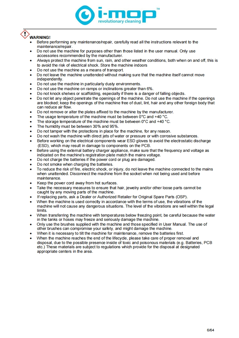 坦能清洗机洗地机tennant-i-mop-xxl-walk-behind-floor-scrubber-service-manual维修手册含电器原理图找手册网昨天发布关注私信9.01MB64页037坦能清洗机洗地机tennant-i-mop-xxl-walk-behind-floor-scrubber-service-manual维修手册含电器原理图此内容为付费资源,请付费后查看¥19¥21黄金会员免费钻石会员免费登录购买付费资源 第1页 / 共64页 第2页 / 共64页 第3页 / 共64页 第4页 / 共64页 第5页 / 共64页 第6页 / 共64页 第7页 / 共64页 第8页 / 共64页 第9页 / 共64页 第10页 / 共64页 试读已结束,还剩54页,您可下载完整版后进行离线阅读 THE ENDTENNANT(坦能) 文本预览 i-morevolutionary cleaningJan.2018i-mop xxl-ServiceManualWarning:read theinstructions beforeusing the machinePowered by©i-北eamTENNANTNORTH AMERICA1/64 查看更多 收起部分 喜欢就支持一下吧收藏