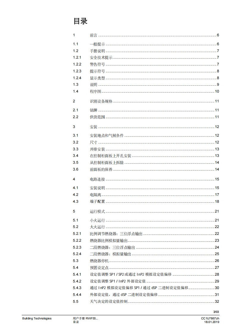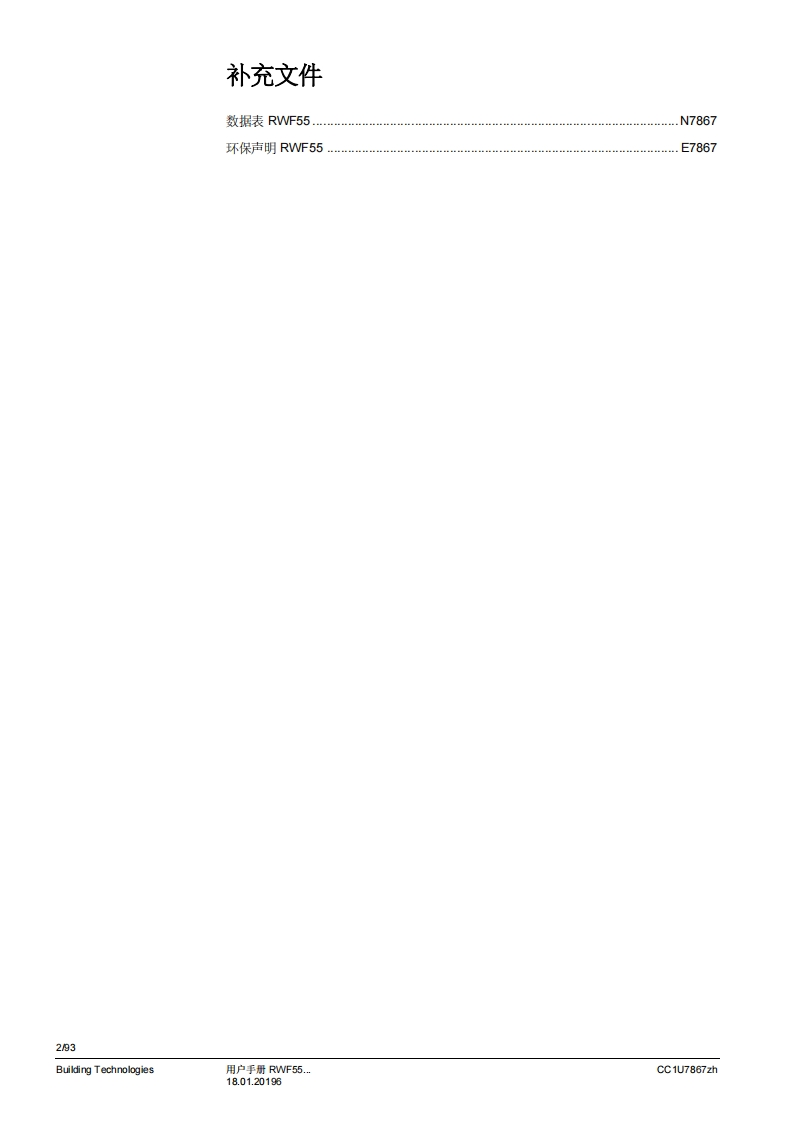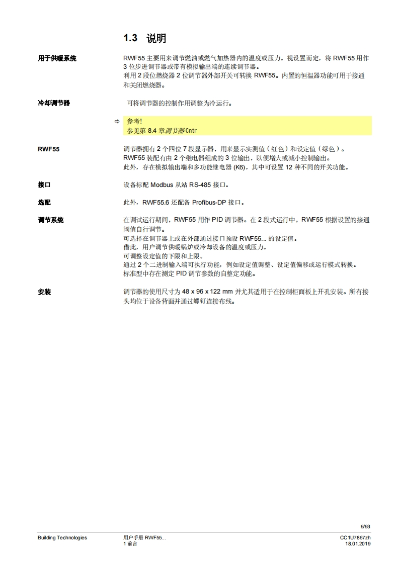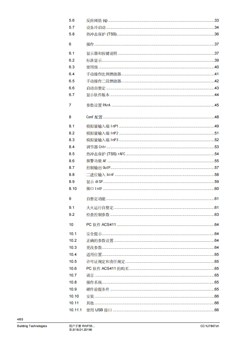 SIEMENSSIEMENS62.68.8A I K6ESCEnterRWF55RWF55.5和RWF55.6比例调节仪用于比调或多段燃烧器和空调系统的温度/压力优化控制用户手册RWF55.5/RWF55.6调节器以及本用户手册专供在其产品中使用RWF55.5或RWF55.6的原始设备制造商(OEM)使用!告诚!RWF55数据表N7867中给出的所有安全、普告和技术信息也显示在本文件中。CC1U7867zh18.01.2019Building Technologies