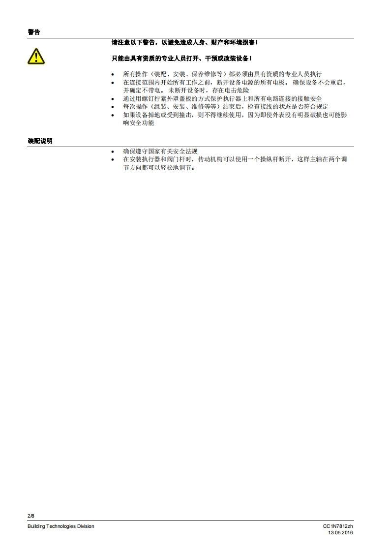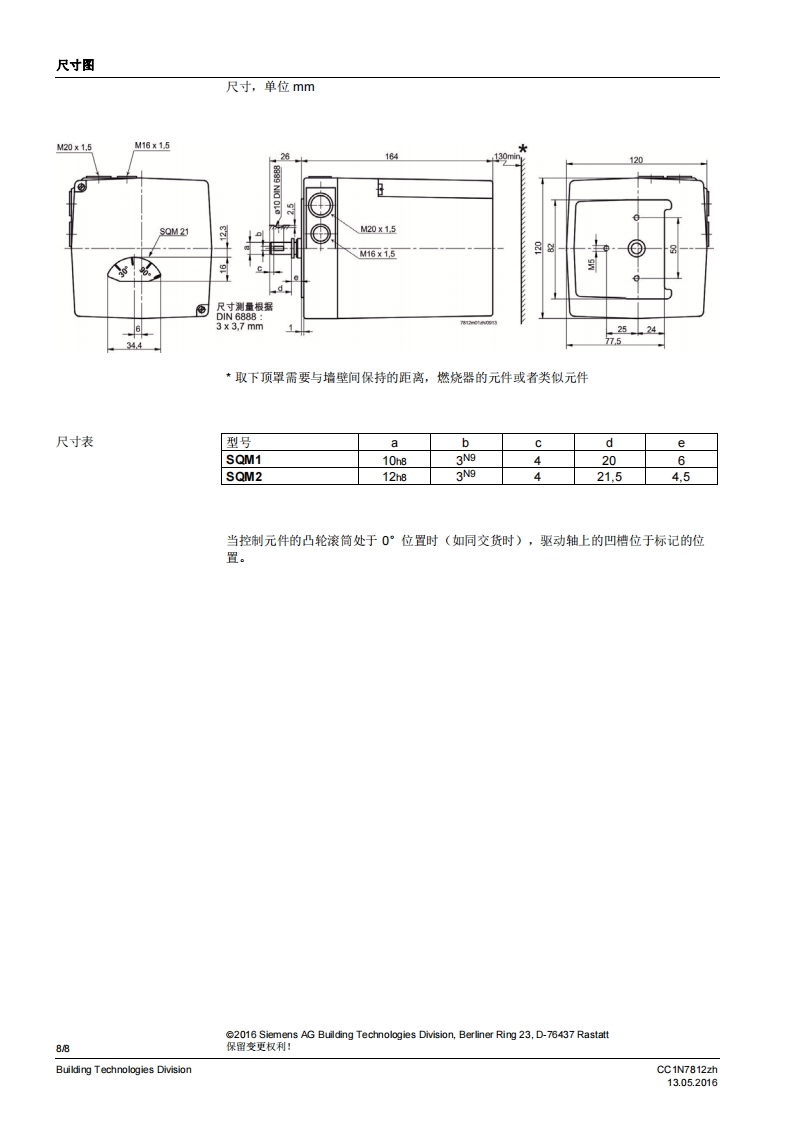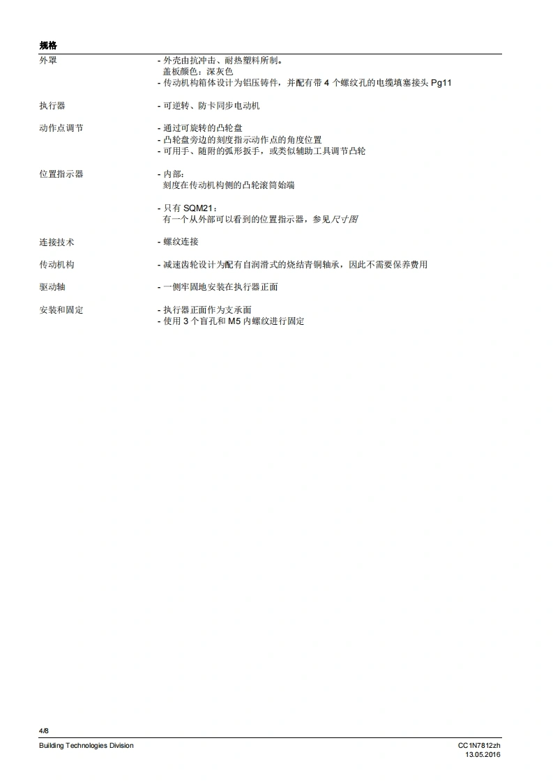 siemens西门子SQM1…SQM2…伺服电机-基础文件-中文安装操作说明书手册找手册网昨天发布关注私信0.29MB8页034siemens西门子SQM1…SQM2…伺服电机-基础文件-中文安装操作说明书手册此内容为付费资源,请付费后查看¥19¥21黄金会员免费钻石会员免费登录购买付费资源 第1页 / 共8页 第2页 / 共8页 第3页 / 共8页 第4页 / 共8页 第5页 / 共8页 第6页 / 共8页 第7页 / 共8页 第8页 / 共8页 已完成全部阅读,共8页 THE END西门子 文本预览 SIEMENS7812执行器SQM1...用于燃油燃烧器上风门挡板和燃料调节阀SQM2...可逆转的电动执行器·扭矩:-SQM1至10NmSQM2至20Nm·运行时间:-SQM114.100sSQM229.66s·型号:·左转或右转SQM以及本资料专供在其设备中集成使用SQM的原始设备制造商(OEM)使用!应用可逆转执行器SQM是为通过调节器或者带转换触头的开关电容进行控制而设计的。CC1N7812zhBuilding Technologies Division13.052016 查看更多 收起部分 喜欢就支持一下吧收藏
