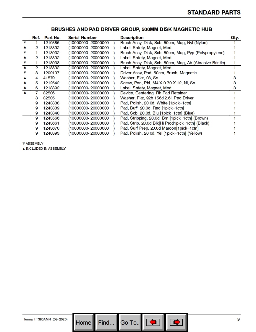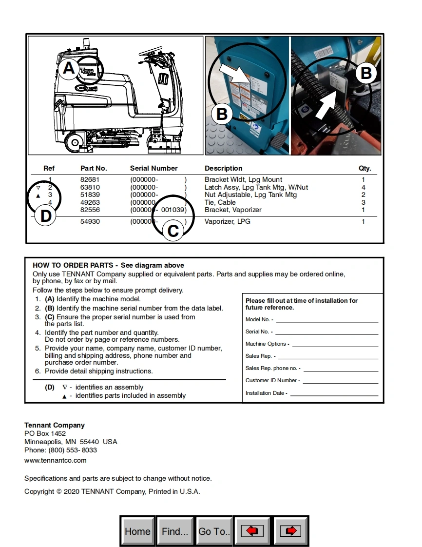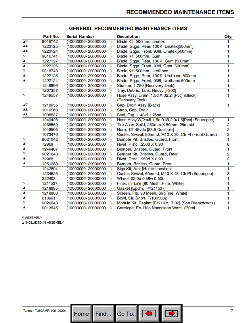 TENNANTT380AMRRider ScrubberParts Manual(S/N10000000-20000000)Hygenic Fully Cleanable Recovery TankTennantTrue PartsPro-Panel®ControlsInsta-ClickTM Magnetic DiskH2NanoCleanGlobal马g9021010For the latest Parts manuals and otherlanguage Operator manuals,visit:ReV.00(08-2020)www.tennantco.com/manualHomeFind...Go To.