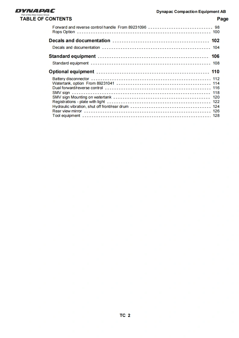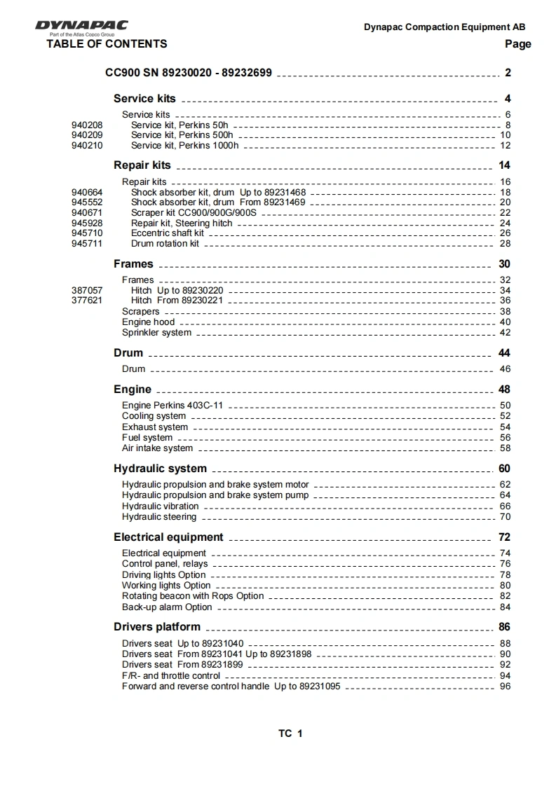 戴纳派克Dynapac-CC-900-零部件目录手册图册找手册网13小时前发布关注私信1.26MB145页033戴纳派克Dynapac-CC-900-零部件目录手册图册此内容为付费资源,请付费后查看¥39¥41黄金会员免费钻石会员免费登录购买付费资源 第1页 / 共145页 第2页 / 共145页 第3页 / 共145页 第4页 / 共145页 第5页 / 共145页 第6页 / 共145页 第7页 / 共145页 第8页 / 共145页 第9页 / 共145页 第10页 / 共145页 试读已结束,还剩135页,您可下载完整版后进行离线阅读 THE END约翰迪尔/戴纳派克 文本预览 DYNAPACCC900SPARE PARTSCATALOGUESCC900-1EN5之DYNAPACPart of the Atlas Copco GroupBox 504,SE-371 23 Karlskrona,SwedenPhone:+46455306000,Fax+46455306010www.dynapac.com 查看更多 收起部分 喜欢就支持一下吧收藏