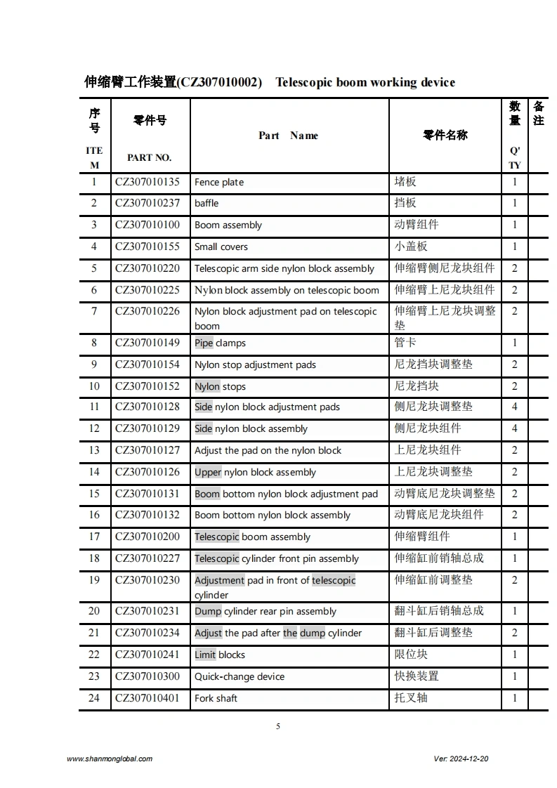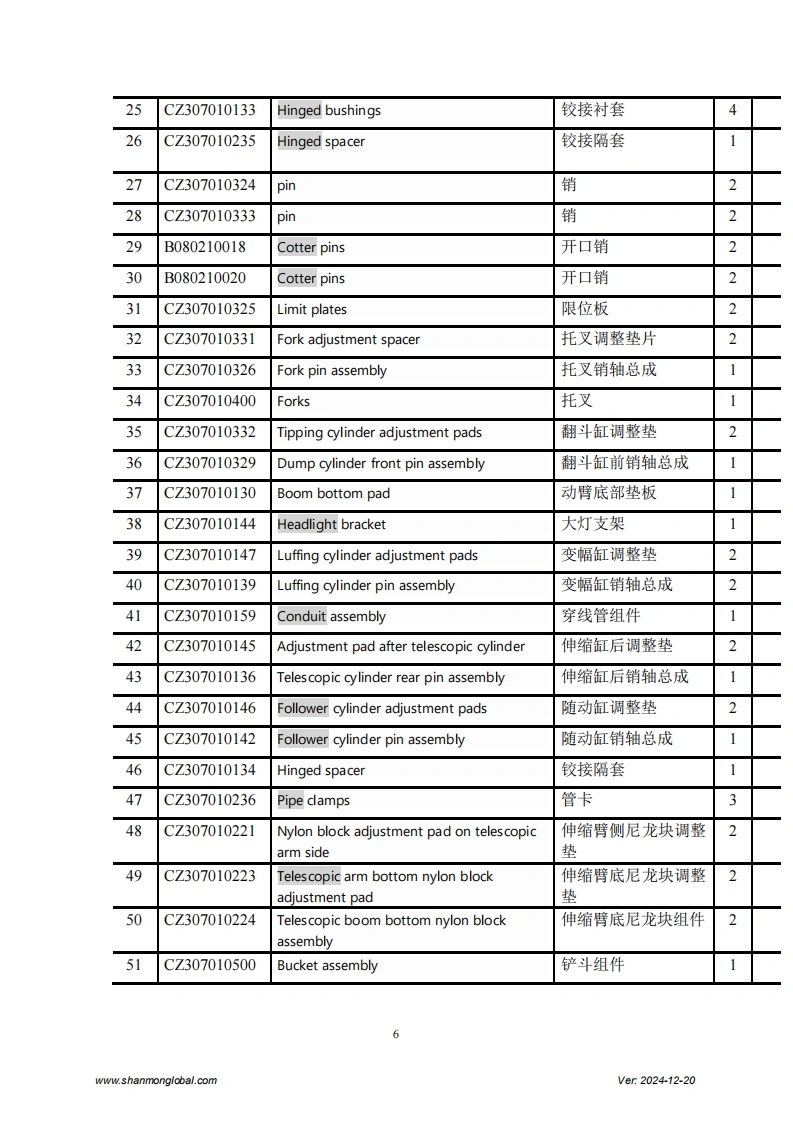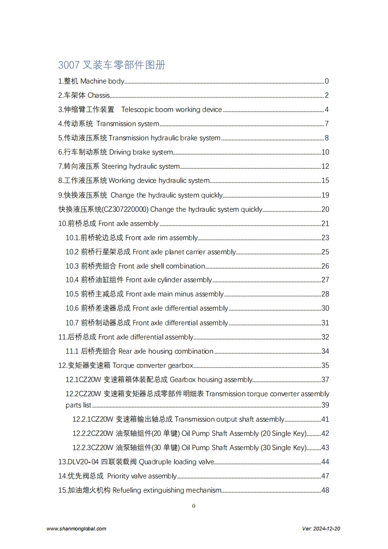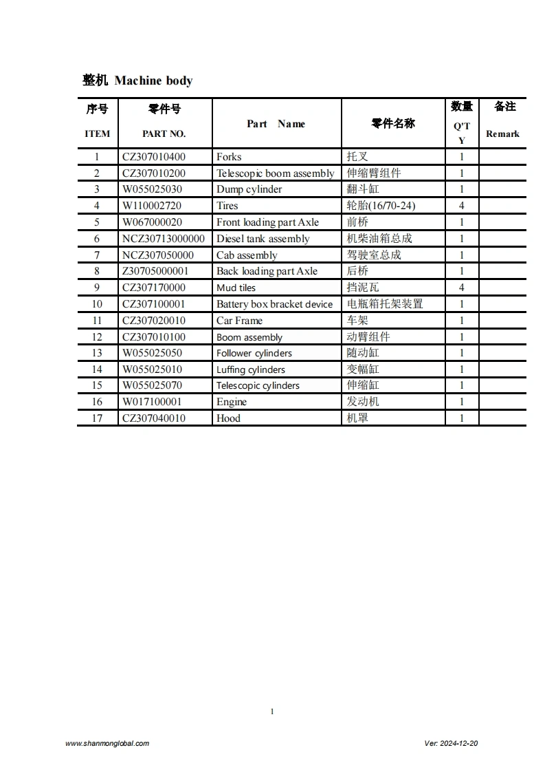 SHANMON3007J TelehandlerExploded DrawingShandong Weimeng Machinery Technology Co.,Ltdwww.shanmonglobal.comVer2024-12-20Shandong Weimeng Machinery Technology Co.,LtdAddress:No.9567,Nanhuan Road,Qingzhou City,Shandong Province,China