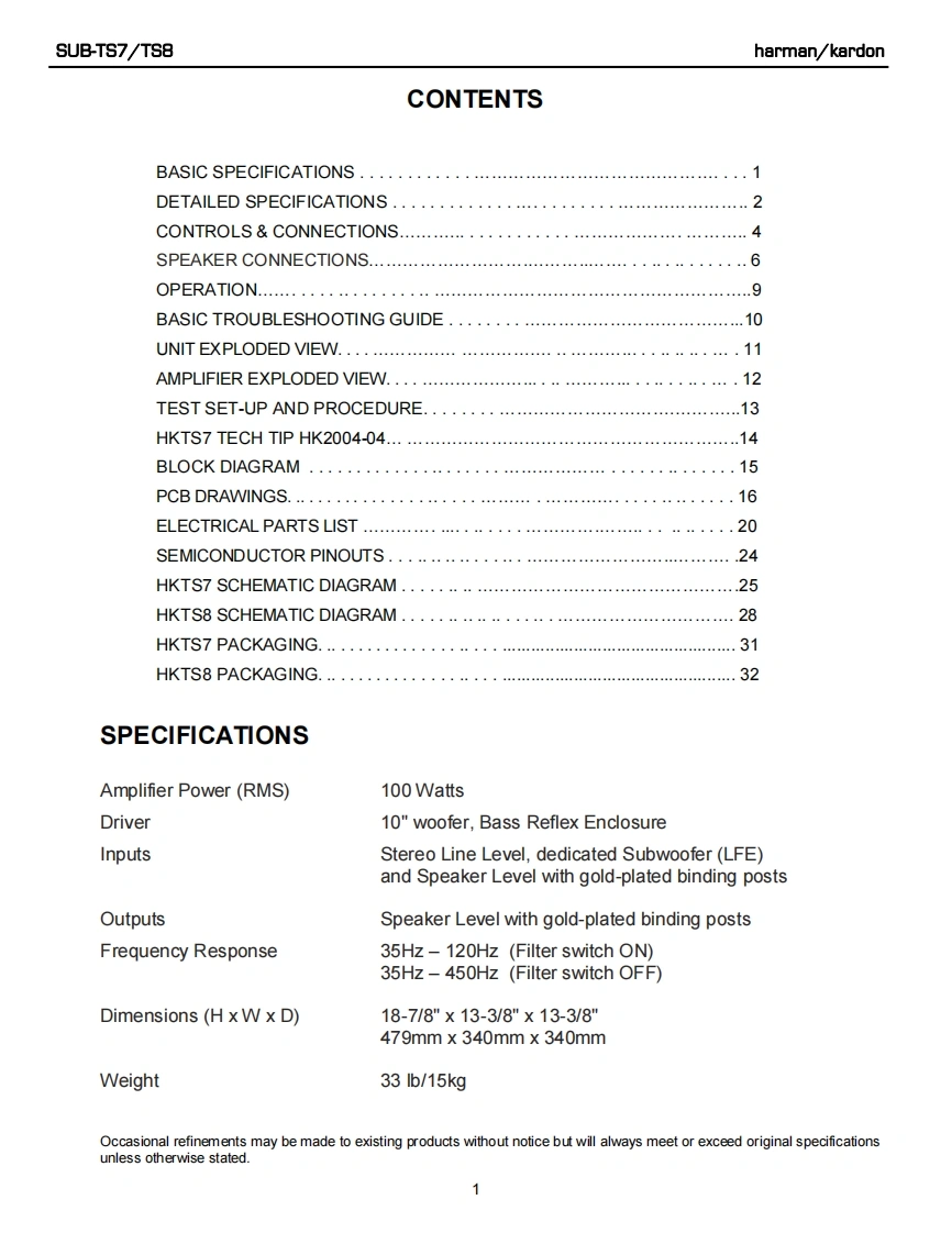 哈曼卡顿hfe-harman-kardon音响音箱-sub-ts7-ts8-service-en-480479维修手册含电器原理图找手册网4小时前发布关注私信0.95MB33页043哈曼卡顿hfe-harman-kardon音响音箱-sub-ts7-ts8-service-en-480479维修手册含电器原理图此内容为付费资源,请付费后查看¥29¥31黄金会员免费钻石会员免费登录购买付费资源 第1页 / 共33页 第2页 / 共33页 第3页 / 共33页 第4页 / 共33页 第5页 / 共33页 第6页 / 共33页 第7页 / 共33页 第8页 / 共33页 第9页 / 共33页 第10页 / 共33页 试读已结束,还剩23页,您可下载完整版后进行离线阅读 THE END哈曼卡顿/飞利浦 文本预览 harman/kardonSUB-TS7 (HKTS 7 SUBWOOFER)SUB-TS8(HKTS 8 SUBWOOFER)SERVICE MANUALnran/kaidonharman/kardon,Inc.250 Crossways Park Dr.Woodbury,New York 11797Rev110/2006 查看更多 收起部分 喜欢就支持一下吧收藏