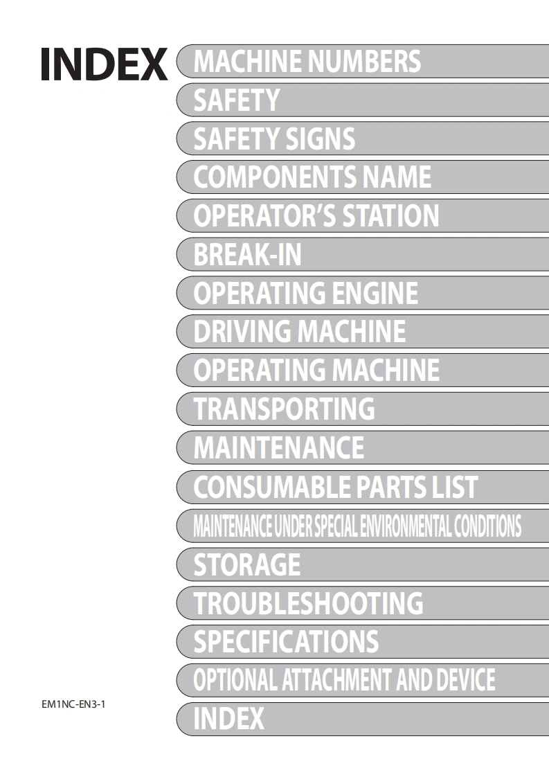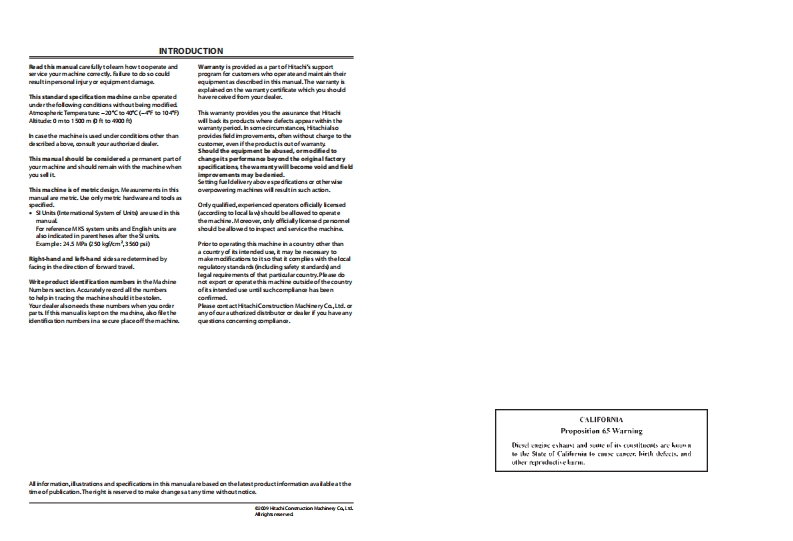 PART NO.BV1NC-EN3-1HITACHIOperator's ManualZA以IS14-316-3MANUAL18-327-3Hydraulic ExcavatorHitachi Construction Machinery Co.,Ltd.URL:http://www.hitachi-c-m.comSerial No.2X14-3001001 and up☑16-3003001 and up2X183005001 and upPRINTED IN THE NETHERLANDS (AC)2009,12EMINCEN3-12273007001 and up