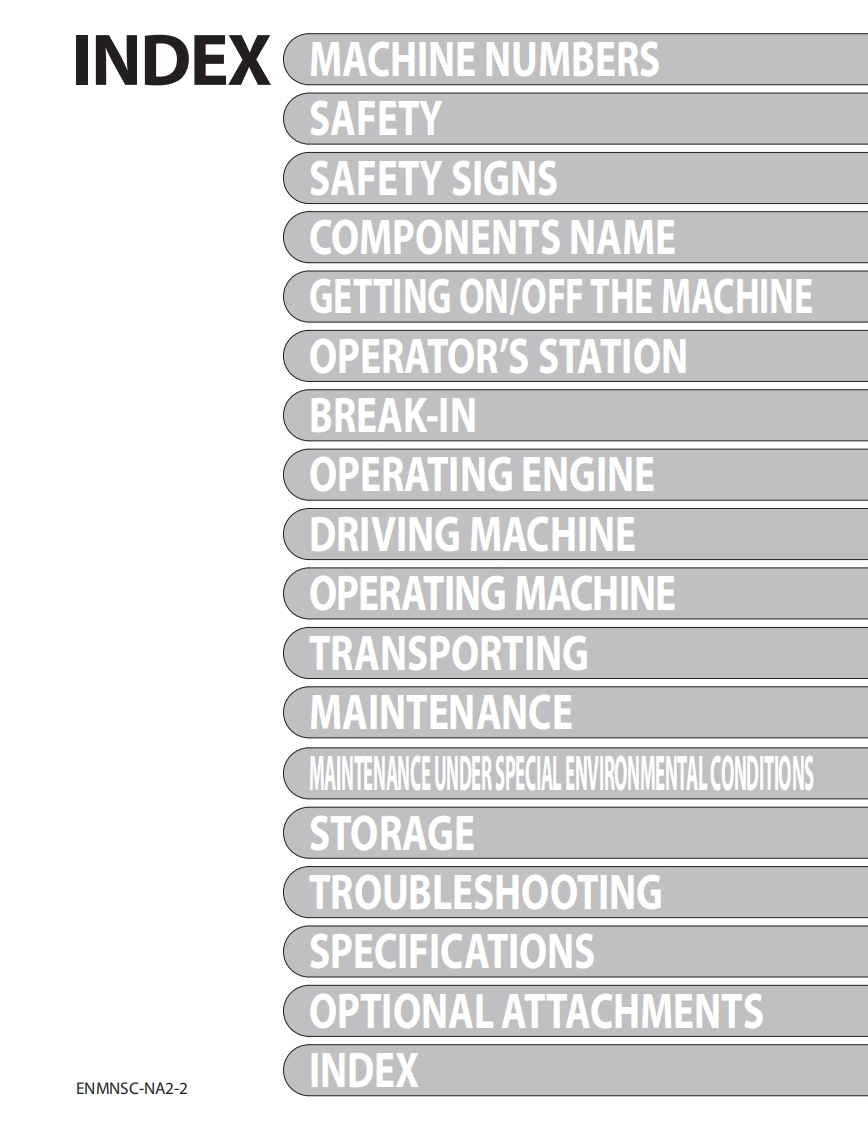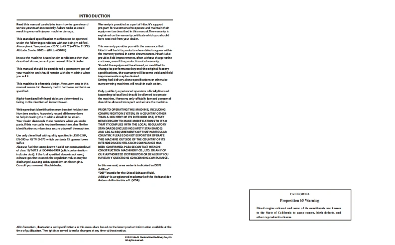 日立Hitachi-ZW100-6-120-6-Wheel-Loaders-操作与维修维护手册找手册网13小时前发布关注私信1.45MB366页044日立Hitachi-ZW100-6-120-6-Wheel-Loaders-操作与维修维护手册此内容为付费资源,请付费后查看¥39¥41黄金会员免费钻石会员免费登录购买付费资源 第1页 / 共366页 第2页 / 共366页 第3页 / 共366页 第4页 / 共366页 第5页 / 共366页 第6页 / 共366页 第7页 / 共366页 第8页 / 共366页 第9页 / 共366页 第10页 / 共366页 试读已结束,还剩356页,您可下载完整版后进行离线阅读 THE END日立/BlueGiant/Sakai 文本预览 28100-4:1320-4FART NO.ENMNSC-NA2-2HITACHIReliable solutionsWHEEL LOADEROperator's ManualZW100-6120-6Wheel LoaderHitachi Construction Machinery Co.,Ltd.URL:https://www.hitachicm.comDENMNSC-NA2-2PRINTEDIN JAPAN月202,09Serial No.005201 and up 查看更多 收起部分 喜欢就支持一下吧收藏
