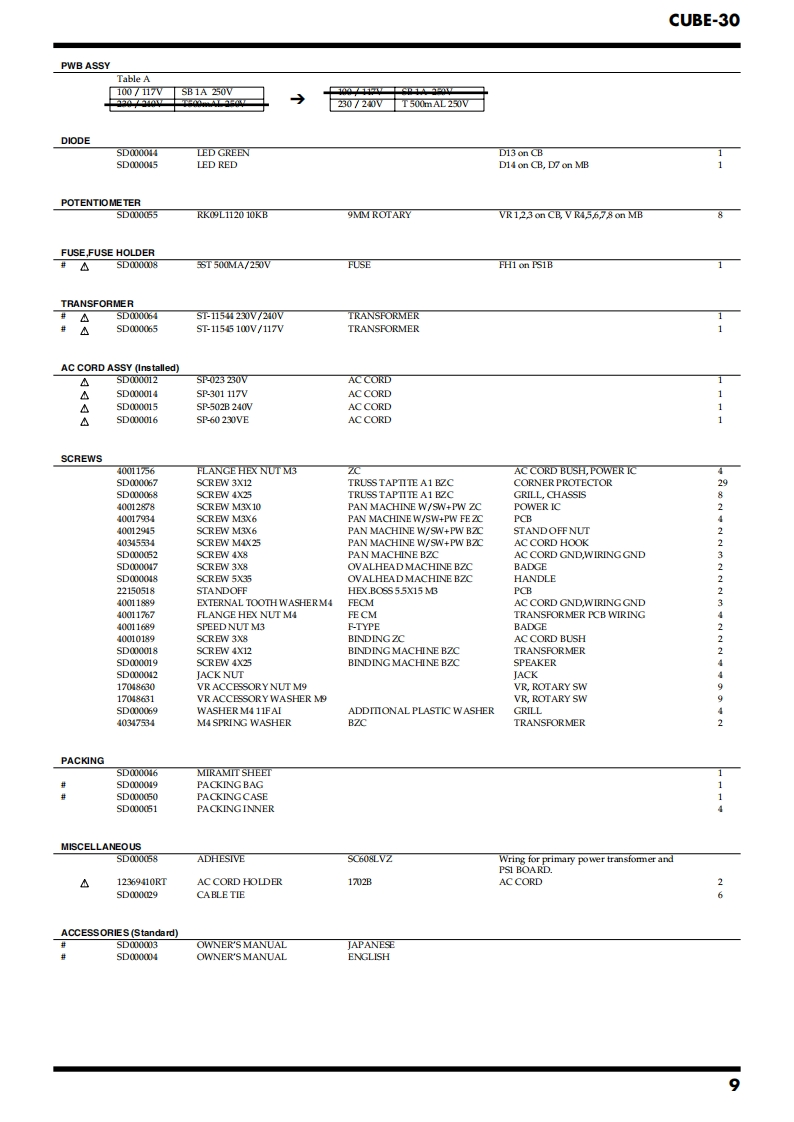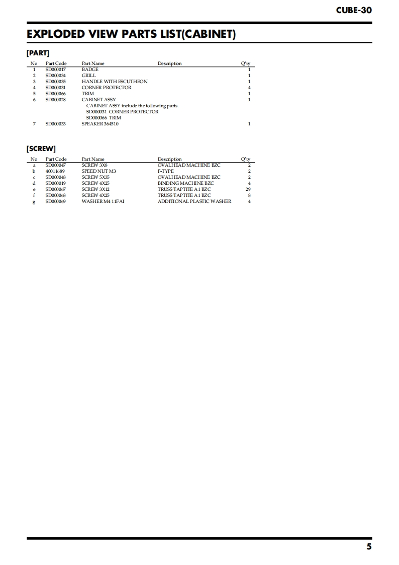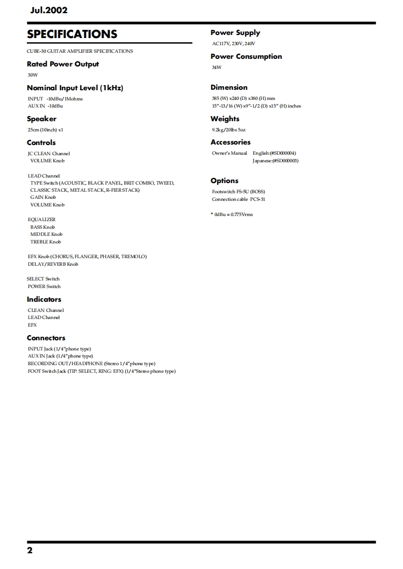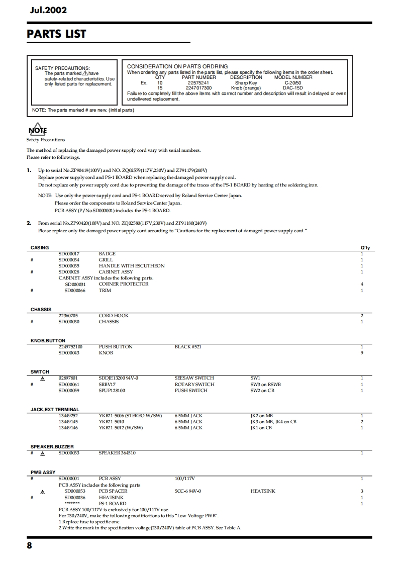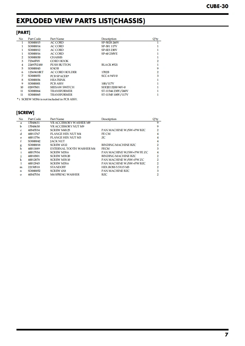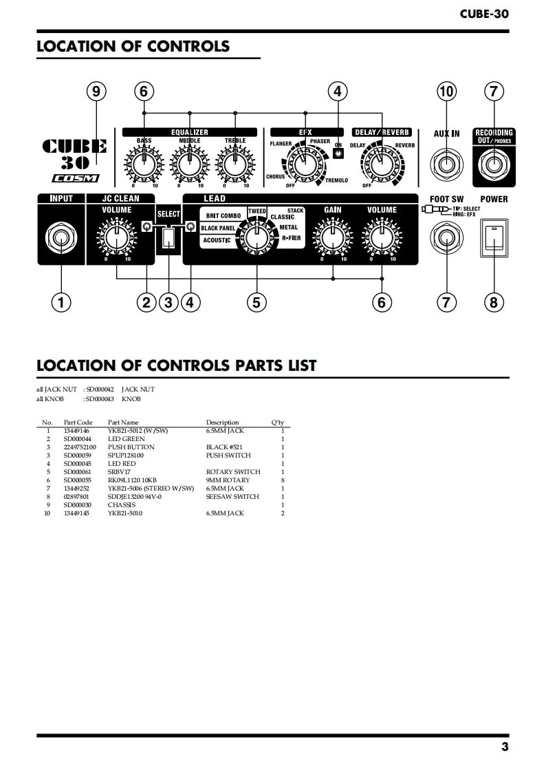 Jul.2002CUBE-30CBE30SERVICE NOTESIssued by RJATABLE OF CONTENTSSPECIFICATIONS.......2EXPLODED VIEW PARTS LIST(CHASSIS)........LOCATION OF ONTROLS..3PARTS LIST..8LOCATION OF CONTROLS PARTS LIST.............3CHECKING THE VERSION NUMBER.................10EXPLODED VIEW(CABNET).4TESTMODE....10EXPLODED VIEW PARTS LIST(CABINET)...........5CAUTIONS FOR THE REPLACEMENT OFEXPLODED VIEW(CHASSIS).........6DAMAGED POWER SUPPLY CORD....12Copyright 2002 ROLAND CORPORATIONAll rights reserved.No part of this publication may be reproduced in any form without the written permissionof ROLAND CORPORATION.Roland17058088E0Printed in Japan(0800)(NB)