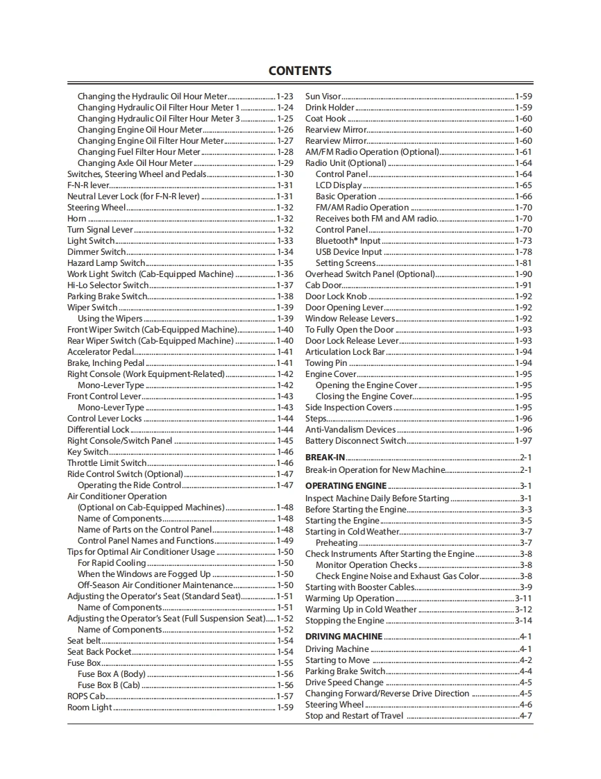 日立Hitachi-ZW80-5B-Wheel-Loader-操作与维修维护手册找手册网13小时前发布关注私信7.14MB338页043日立Hitachi-ZW80-5B-Wheel-Loader-操作与维修维护手册此内容为付费资源,请付费后查看¥39¥41黄金会员免费钻石会员免费登录购买付费资源 第1页 / 共338页 第2页 / 共338页 第3页 / 共338页 第4页 / 共338页 第5页 / 共338页 第6页 / 共338页 第7页 / 共338页 第8页 / 共338页 第9页 / 共338页 第10页 / 共338页 试读已结束,还剩328页,您可下载完整版后进行离线阅读 THE END日立/BlueGiant/Sakai 文本预览 FARTNO.ENMNCH-NA1-4HITACHIReliable solutionsWHEEL LOADEROperator's ManualZW80-5BWheel LoaderHitachi Construction Machinery Co.,Ltd.URL:http://www.hitachi-c-m.com马月aw的世d年PRINTED IN JAPAN K)2020 12ENMNCH-NA1Serial No.005001 and up 查看更多 收起部分 喜欢就支持一下吧收藏