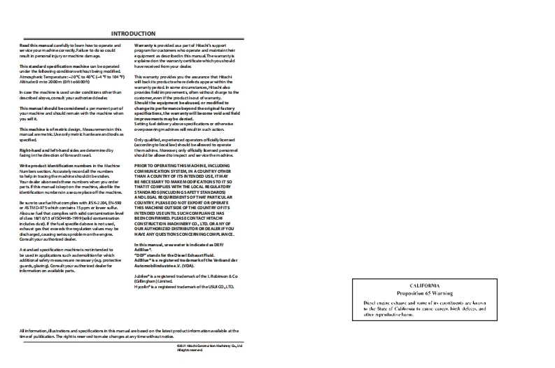 FARTNO ENMDC1-MX2-7HITACHIReliable solutionsOperator's ManualZAXIS120-6 class1306160-6 class160LC6200-6 class210LC-6OPERATORS240-6 class250LC6300-6 class300LC6Hitachi Construction Machinery Co.,Ltd.330-6 classURL:http://www.hitachi-c-m.com350LC8Hydraulic ExcavatorSerial No.ZX1 20.6 class100001 and upZX1 60-6 class050001 and upENMDC1ZX200-6 class500001 and upZX240-6 class050001 and upZX300-6 class060001 and upPRNTEDIN JAPAN用202.11M7ZX330.6 class080001 and up