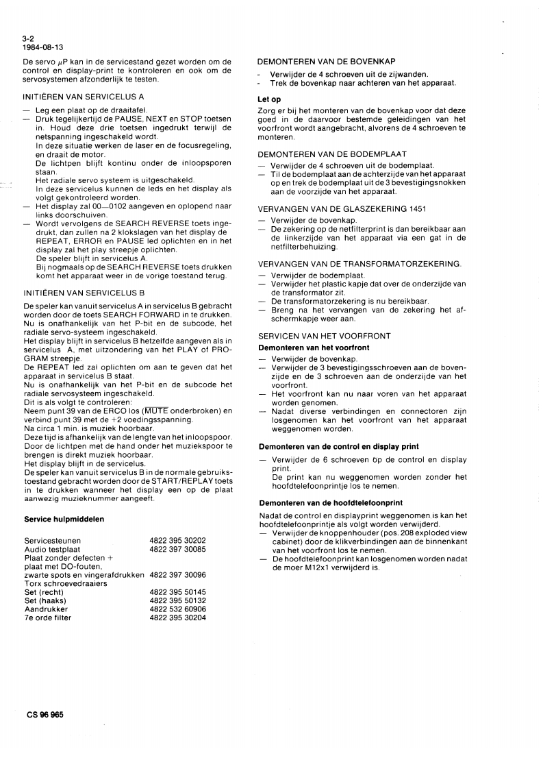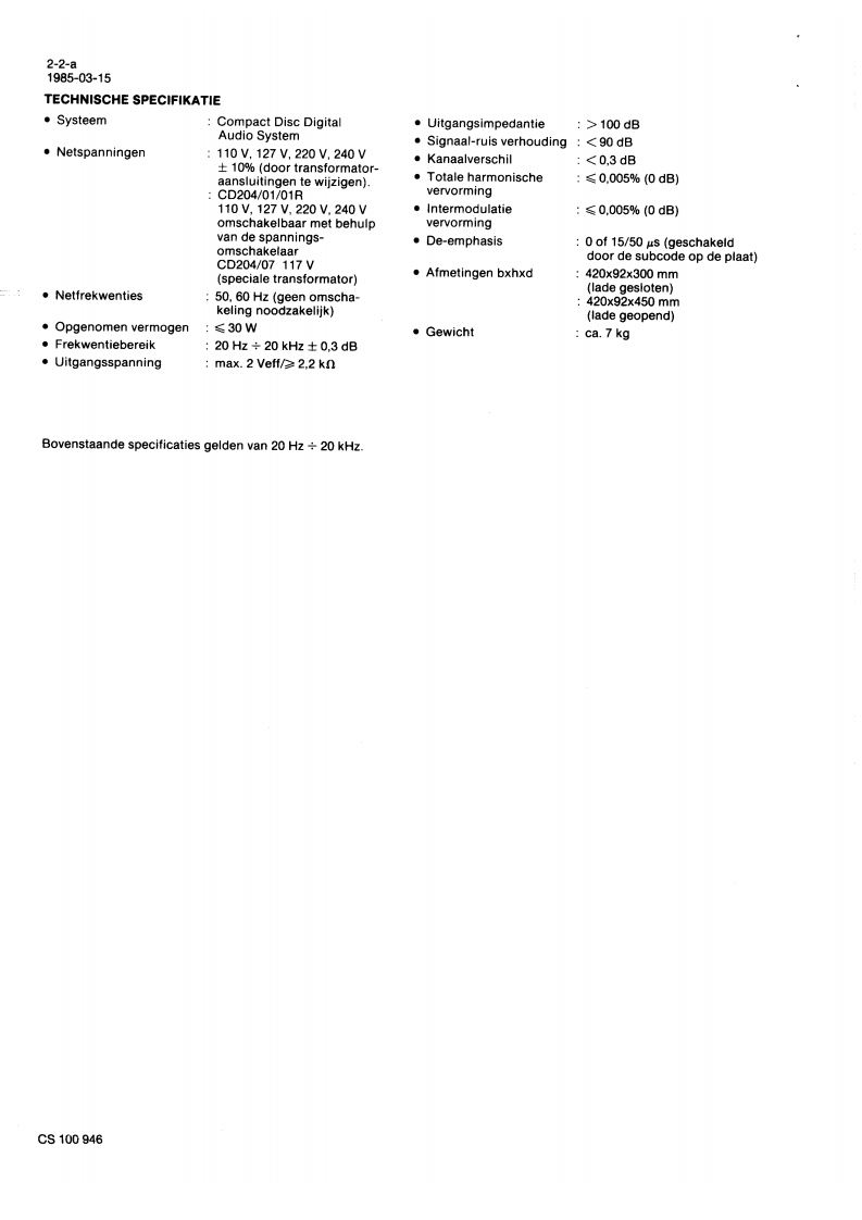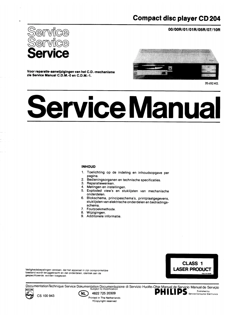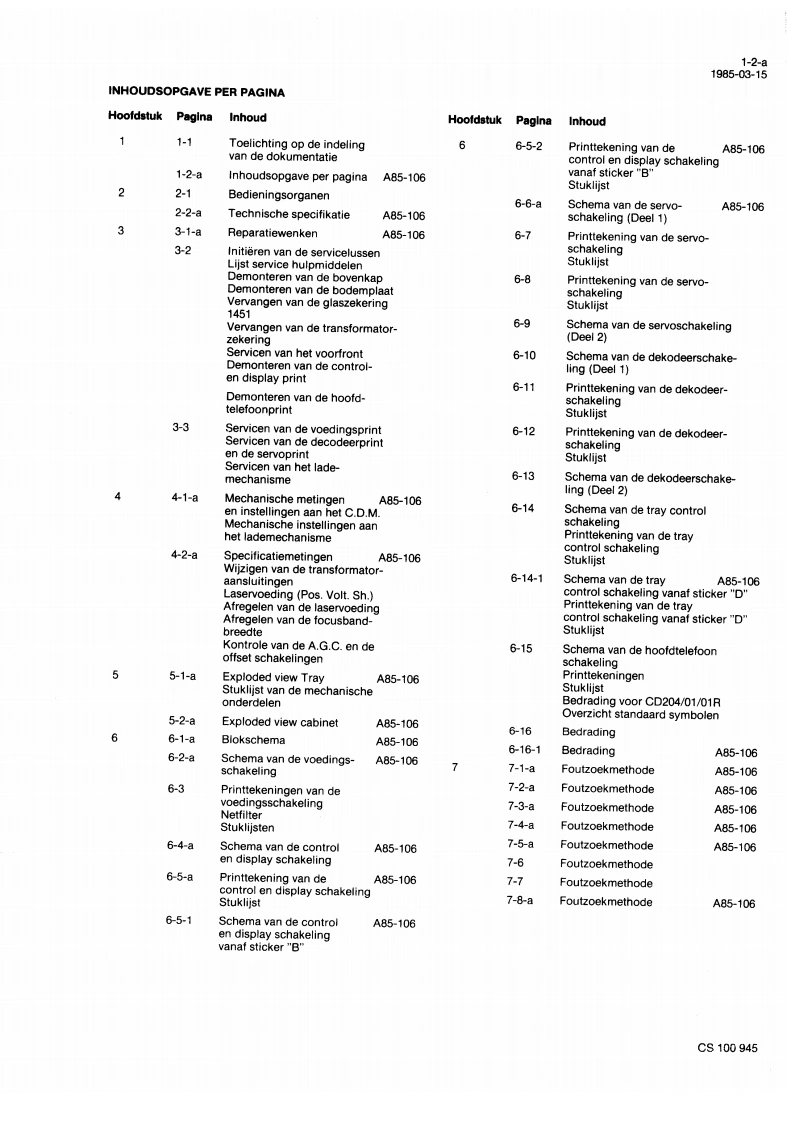 Service1985-03-15ServiceCD204ServiceInformationA85-106NLVoor het aanpassen van de Service Manual aan de huidigeproduktiestand zijn onderstaande pagina's gewijzigd/toegevoegd.wijzigingsbladenVoorblad1-2-a2-1,2-2-a3-1-a,3-23-3.4-1-a4-2-a5-1-a,5-2-a6-1-a,6-2-a6-3.6-4-a6-5-a,6-5-16-5-2,66-a7-1-a,7-2-a7-3-a.7-4-a7-5-a7-7.7-8-aToevoegingsbladen6-14-1,6-156-16,6-16-18-1,8-28-3ds前DIGITAL AUDIOCS100942