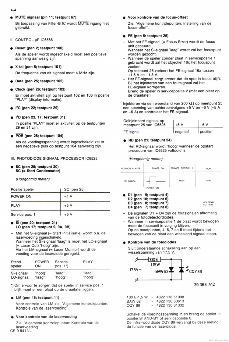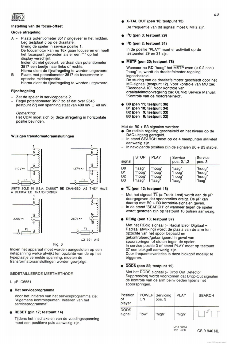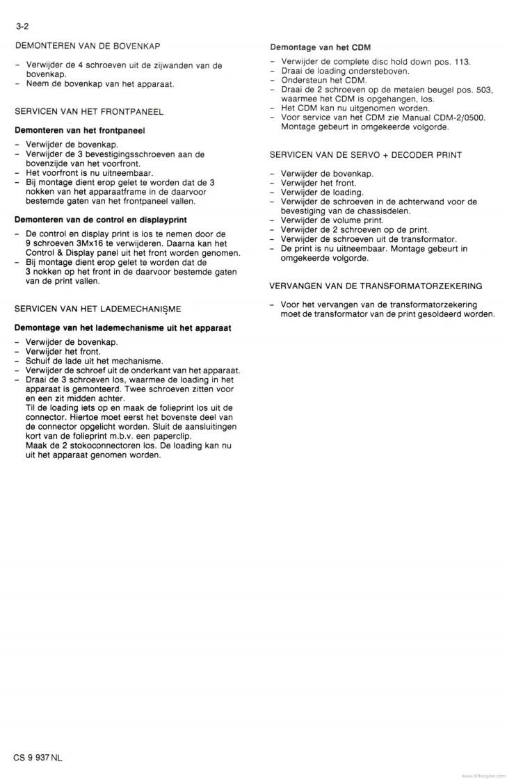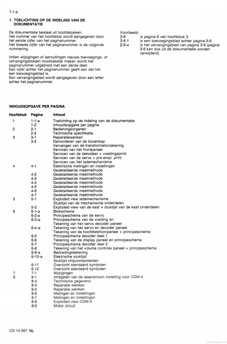 Compact disc player CD373/ooR/o5RServiceServiceServiceVoor reparatie van het CDM-2 mechanisme zie voorstempeling AH00:Service Manual CDM-2,versie 0500.Voor stempeling AH01 en hoger:hoofdstuk 8De afstandsbediening is leverbaar ondercodenummer 4822 218 20655.4234642Service Manuald脂前DIGITAL AUDIOINHOUDToelichting indeling en inhoudsopgave per pagina2Bedieningsorganen en technische specifikatiesReparatiewenken4Metingen en instellingen5Exploded views en stuklijsten van mechanischeonderdelen6Blokschema,principeschema's,printplaatgegevens.stukliisten van electrische onderdelen enbedradingsschemaWijzigingen8Additionele informatieCLASS 1Veiligheidsbepalingen vereisen.dat het apparaat in zijn oorspronkelijkeLASER PRODUCTtoestand wordt teruggebracht en dat onderdelen,identiek aan degespecificeerde worden toegepast.Documentation Technique Service Dokumentation Documentazione di Servizio Huolte-Ohje Manual de Servicio Manual de ServicoSubject to modificationNL482272521529PHILIPSsoPrinted in The NetherlandsCS 14 056 NL