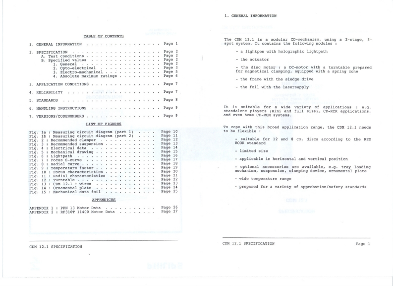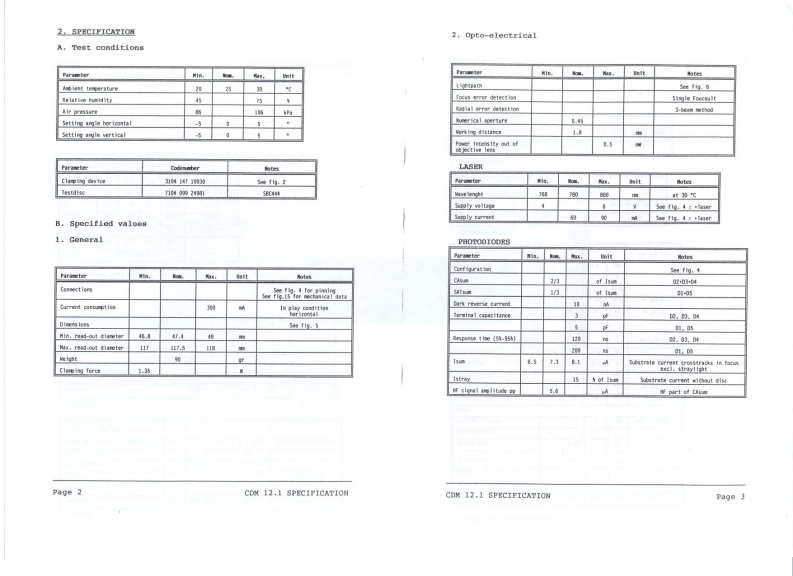 PHILIPSSPECIFICATIONCDM 12.1N.V.Philipa Industrial ActivitiosPhilipa Laser OpticsSPECIFICATIONMarketing SalesCDM 12.13500 HASSELTBELGIUH1e1,:32-11-295836f×,:32-11-295950Rev.3.0(18-01-93)Phillps Laser OpticsKey Modulea GroupCDM 12.1 SPBCIFICATION