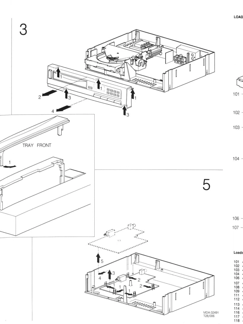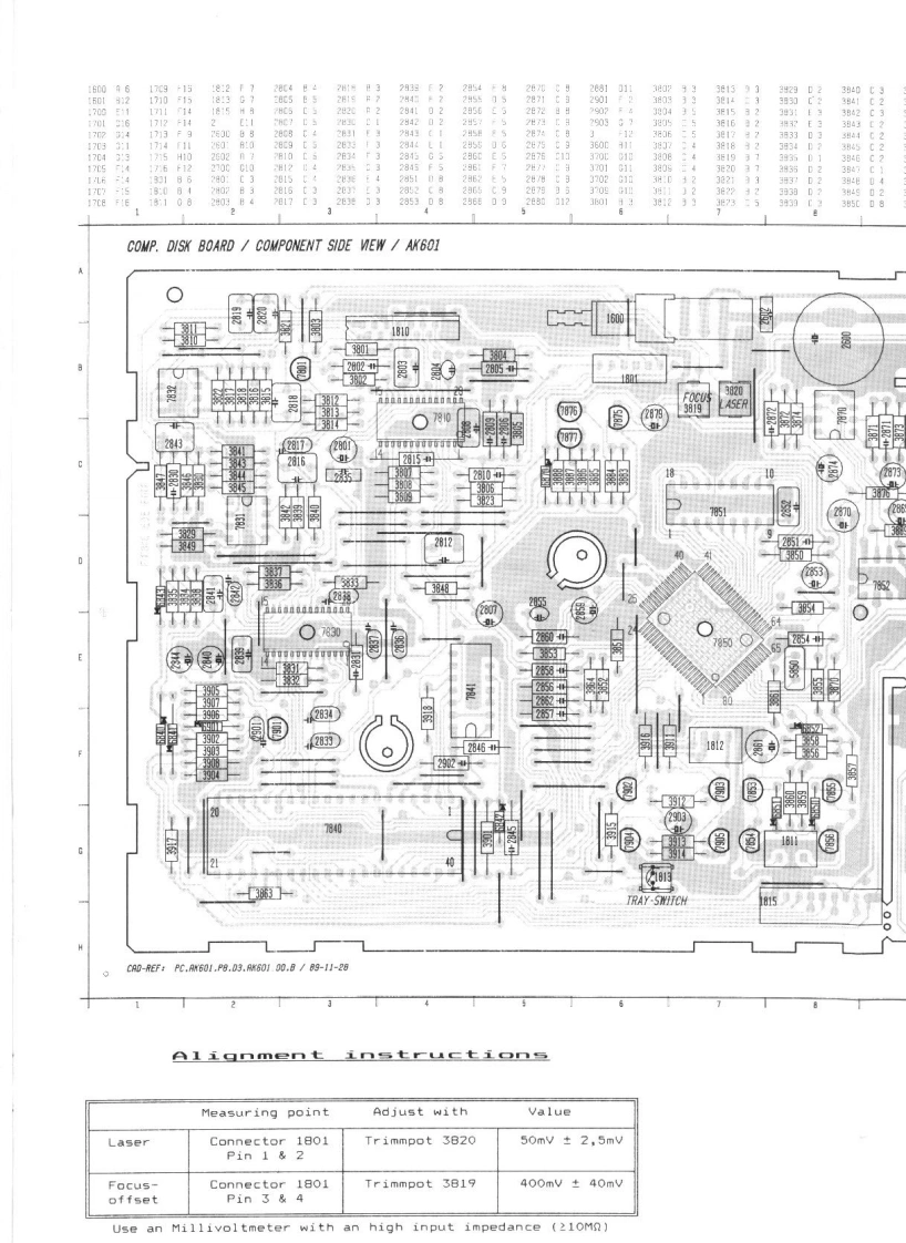 Compact disc player AK601Service/00/01/05/10/17/40/45ServiceService45281A11Service ManualdiscCONTENTSDIGITAL AUDIOConnections and controlsSpecificationService programDismantling of the setExploded view(tray)2234677Mechanical partslist(tray)Circuit diagram CD-PART-10Alignment instructions11Printed circuit board (componentside)11-12Circuit diagram CONTROL-PART13-14Wiring diagram(copperside)15-1Mechanical partslist (set)>Exploded view (set)17-1●Electrical partslist19SVarning!Osynlig laserstralning nar denna del ar oppnad ochsparren ar urkopplad.Betrakta ej stralen.DR Advarsel!Usynlig laserstraling ved abning nar sikkerhedsafbrydereer ude af funktion.Undga udsaettelse for straling.SP Varoitus!Laite sisaltaa laserdiodin,joka lahettaa nakymatontasilmille vaarallista lasersateilya.CLASS 1LASER PRODUCTDocumentation Technique Service Dokumentation Documentazione di Servizio Huolte-Onie Manual de Servicio Manual de ServicioepeSubject to modification482272522646