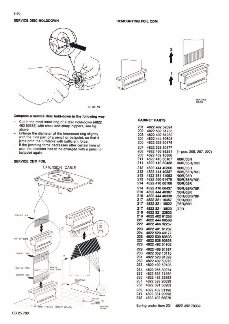 Compact disc player CD210Service00R/05R/60R/61R/65R/70RServiceService44722A11Service Manuald56Electrically:CD210/00R CD210/60RCD210/05R三CD210/65R三CD210/70RCD210/61R=CD210/60R with voltage selectorCONTENTS1Contents and operation buttons2Technical specificationsservicing hints,loading and cabinet parts3Electrical measurements and adjustments4Blockdiagram,panel data and partslist of the mainpanel5Control and display,wiring diagram and electricalpartslist6ChangesGo⊙Safety regulations require that the set be restored to its originalBei jeder Reparatur sind die geltenden Sicherheitsvorschritten zucondition and that parts which are identical with those specified bebeachten.Der Originalzustand des Gerats darf nicht verandert werdenused.for Reparaturen sind Original-Ersatzteile zu verwenden.0①Veiligheidsbepalingen vereisen,dat het apparaat in zijn oorspronkelijkeLe norme di sicurezza esigono che I'apparecchio venga rimesso nelletoestand wordt teruggebracht en dat onderdelen,identiek aan decondizionl originali e che siano utilizzati pezzi di ricambiago identici agespecificeerdeworden toegepast.quelli specificati.FLes normes de securite exigent que I'appareil soit remis a I'etat d'origineet que soient utilisdes les piecesderechange identiques a cellesCLASS 1specifiees.LASER PRODUCTDocumentation Technique Service Dokumentation Documentazione di Servizio Huolte-Ohje Manual de Servicio Manual de ServicioSubject to modification482272522382PHILIPShegogPrinted in The NetherlandsCopyright reserved