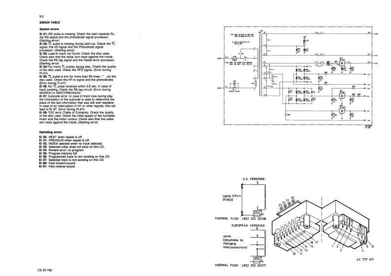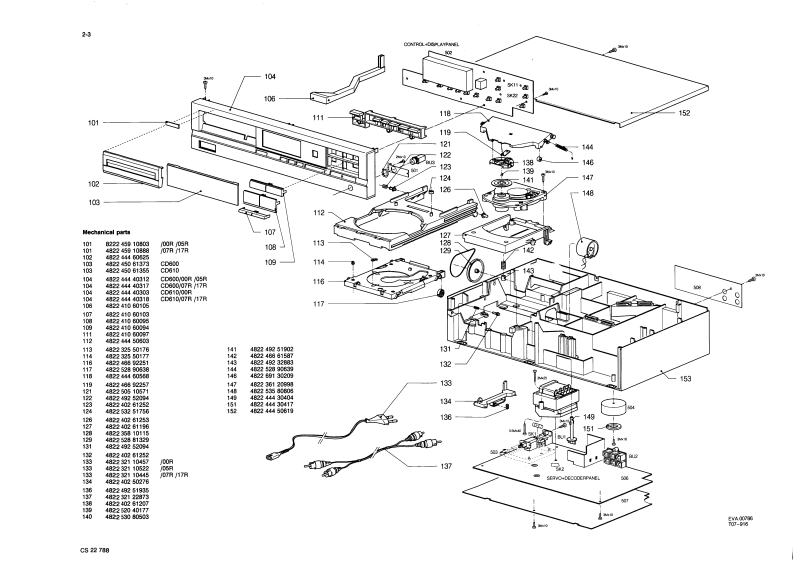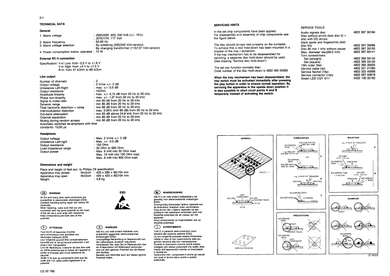 Compact disc player CD600/o0R/OSR/07R/17R1-1ServiceCD610/00R05R/07R/17RServiceServiceService Manuald5前101314CONTENTS44729A111 Dperations21●4tmcM1313OPERATIONServicing hints11利Exploded vew and parts ist mechanicel componontsExplanetion of keya3 Moasurements and adustmerts12 PAUSEIntorrs you about me functioning af me player.D%pf特Co05em0cca特rs味13 FROGRAM3网REM0TEn0 tor CD60-re9山0线fU1E0r5na0oarT0月eg移he sigrais from te ram0 control.For orasing track numbers from a pregramma.For checking a programm维.4 STOPCMFor siopping plary (STOP)14 PHONESFor cornection of heodphonesCONNECTIONSFor selecting a trock numter 1 starplFor selecting track亡whan工mpiing ab.OUT LRho oonnecing cable to ater(FREVIOUS from high lo kw and NEXT fom low to年Insert s red pl好rt扣ne'斤socket [righ-han因hgnJchansoll and to othor plug imo the 'L'socket为(lett-hand channell.AY用EPLATInsert the two othar plugs isto the correspondrgFor startin明play IPLA0oockots of the CD or AUX ingut of your amplter.For retuming to the beginning of a track [REPLAY].You can Nsn uee the TUNER o TAPE IN oonnection7OPEN/CLOSEbut never the PHONO ineut This is not suitabie lorCLASS 1LASER PRODUCT0p9nnmnn,ta28nege4-awmConneoong up me oqu pment wheREPEATF行p线tn的a dte or鱼P0anmewith its own femole control sys1m.0填8G3rgh0rtTo特Go-中oe4hwEM220aiabie as an4osey,f轴th的0 ne piayPHILIPS二For sating te starting and stopping point of aprovonts its R REMOTE eye from recelving the422242407PG海闻中郑p.ignals from the remote comrol directly.C81C82276