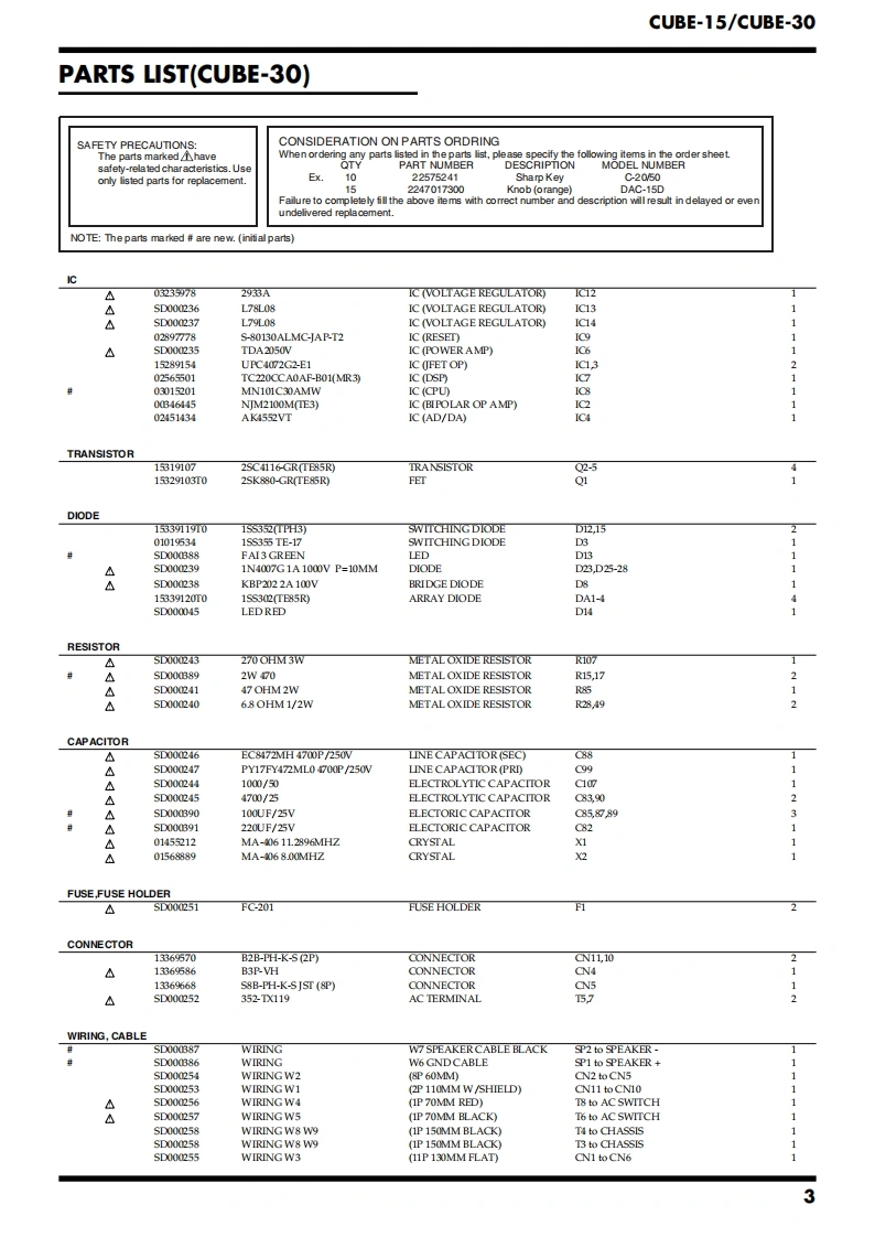 0ct.2003CUBE-15/CUBE-30DB2155ADDITIONALSERVICE NOTESCUB30Second editionIssued by RJACHANGE INFORMATIONWe can supply the spare parts mounted on PWB board.Please refer to following items.PARTS LIST(CUBE-15)....CIRCUIT DIAGRAM(CUBE-30)-3.........10PARTS LIST(CUBE-30)......3CIRCUIT BOARD(CUBE-15)..4.CIRCUITDIAGRAM(CUBE-15).........................5.CIRCUIT BOARD(CUBE-30).6CIRCUIT DIAGRAM(CUBE-30)............08CIRCUIT DIAGRAM(CUBE-30)-1.....8CIRCUITDIAGRAM(CUBE-30)-2.........................9.olanCopyright 2003 ROLAND CORPORATIONAll rights reserved.No part of this publication may be reproduced in any form without the written permissionof ROLAND CORPORATION.Roland17058193E1Printed in Japan(0800)(NB)